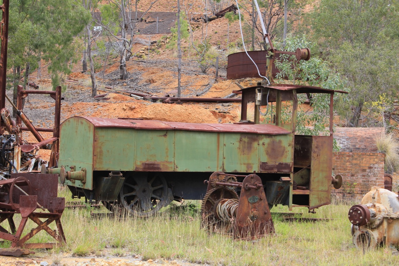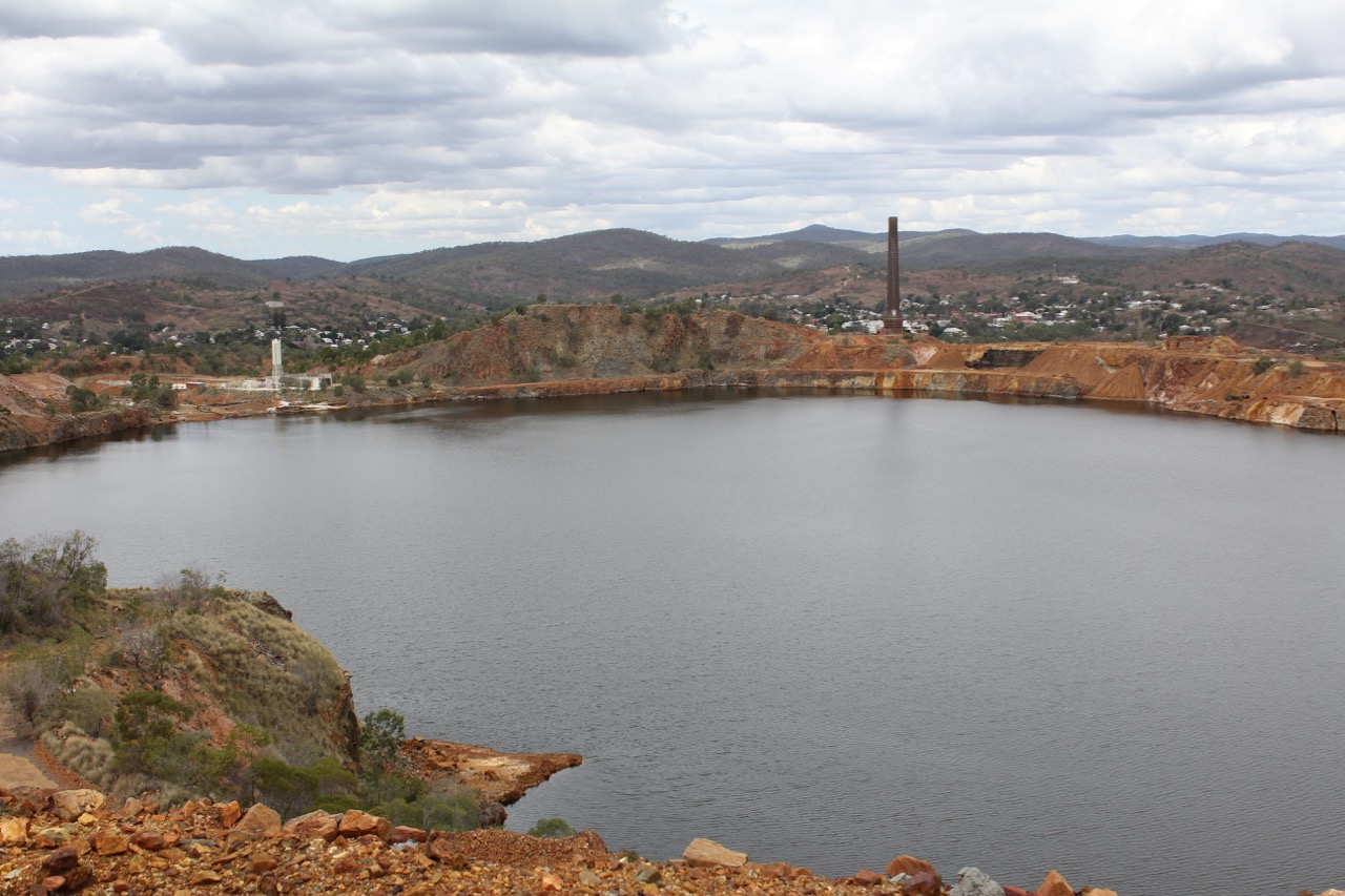 Weiter gehts zum eigentlichen Ziel für heute. Einer Tour zur ehemaligen Goldmine am Mount Morgan. John, seine Tochter Heike und Tochter Vitoria fuhren unsere etwa 10 Mann große Gruppe in einem kleinen Bus umher. Erst ging es durch die mitlerweile sehr kleine Stadt Mount Morgan. Ende 1880 wurde hier Gold entdeckt und löste einen kleinen Boom aus. 15.000 Menschen lebten dort zu Spitzenzeiten. Nachdem die Mine in den 1960ern endgültig geschlossen wurde, sind es heute noch 2.500 Einwohner. Es gibt aber wohl Überlegungen die Mine zu reaktivieren, von den Chinesen. Die Tour führte durch die Straßen und zeigte Überreste der Goldzeit. Meist Mangobäume und Steinmauern.