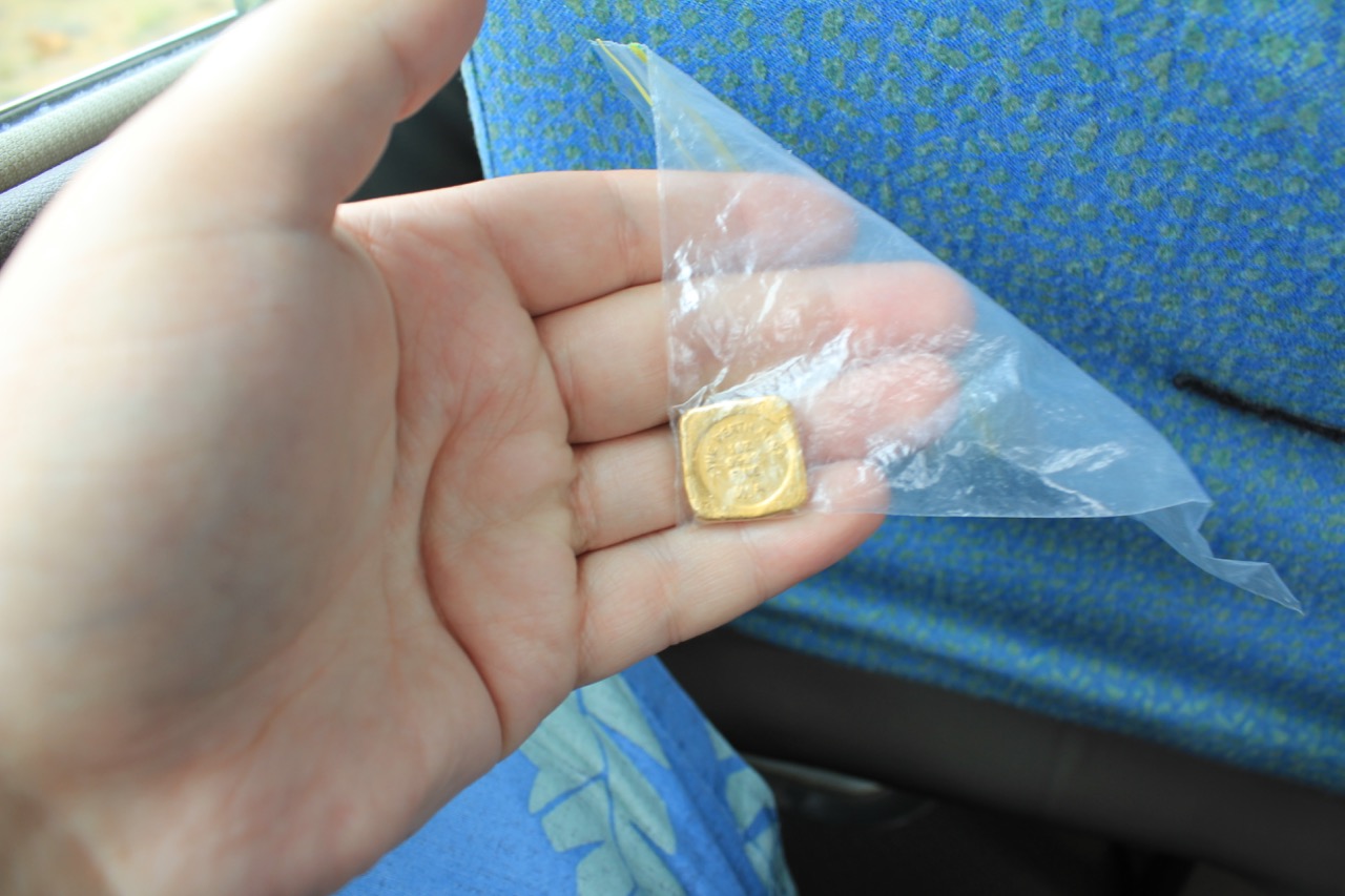 Im Bus haben sie uns dann noch eine Unze Gold herumgegeben, die der Bruder von Heike mal gewonnen hat. Ganz schön schwer und wertvoll das kleine Ding.