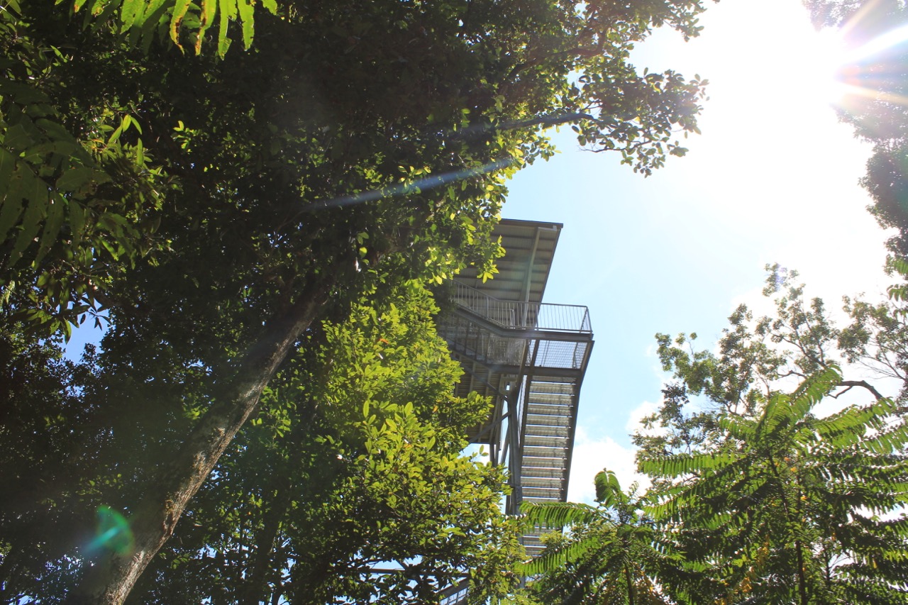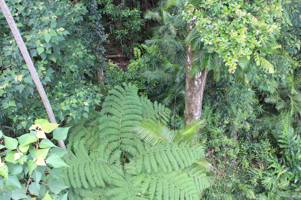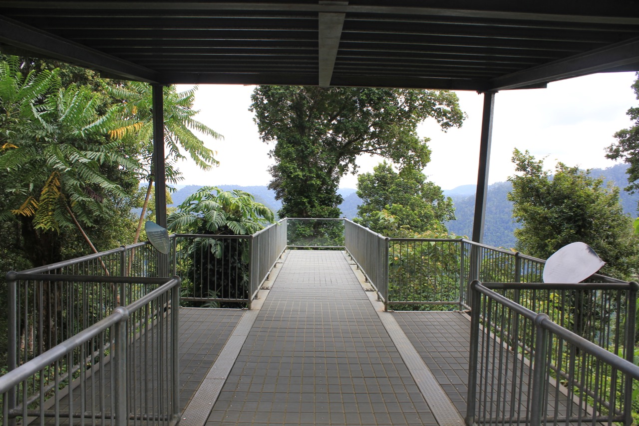 Auf dem Weg zu den Wasserfällen passierten wir ein Schild zum Regenwald Skywalk. War beim ersten Mal ja schon nicht schlecht.Also auf gings. Diesmal mit Eintritt, aber egal. Der Weg war sehr schön und nach etwa 15 Minuten kamen wir auf dem Skywalk an. Das war unsere Aussicht. Nichts als Regenwald so weit das Auge reicht. Und das trotz zweier Zyklone in 2003 oder so und 2011, die die Region ganz schön verwüstet haben.