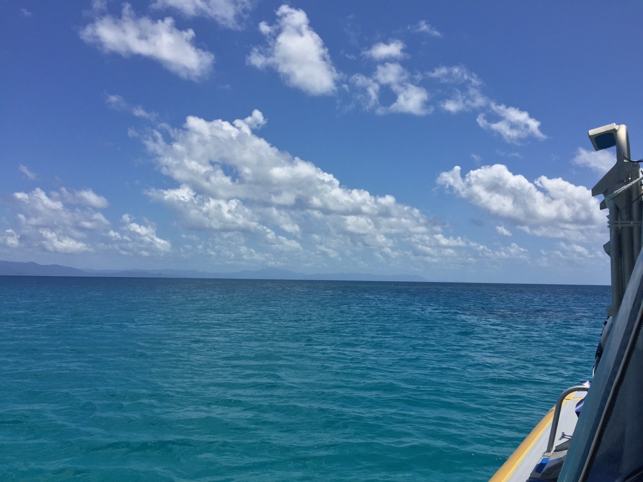 Dieses Mal dauert die Fahrt aber nur halb so lang, nach 25 Minuten kommen wir an. Mitten auf dem Ozean, wenigstens gefühlt. Das Land ist nur in die eine Richtung diesig zu erahnen. Und da sollen wir jetzt ins Wasser springen? Das letzte mal hatten wir ja Land in Sicht, auch wenn es trotzdem kaum erreichbar gewesen wäre, gibt es hier die Gewissheit, keine Chance auf Land. Überall Wasser. Ein ganz schön komisches Gefühl einfach so vom Boot zu springen. Aber es klappte dann ja doch, denn der Beitrag hier schreibt sich ja nicht selbst.