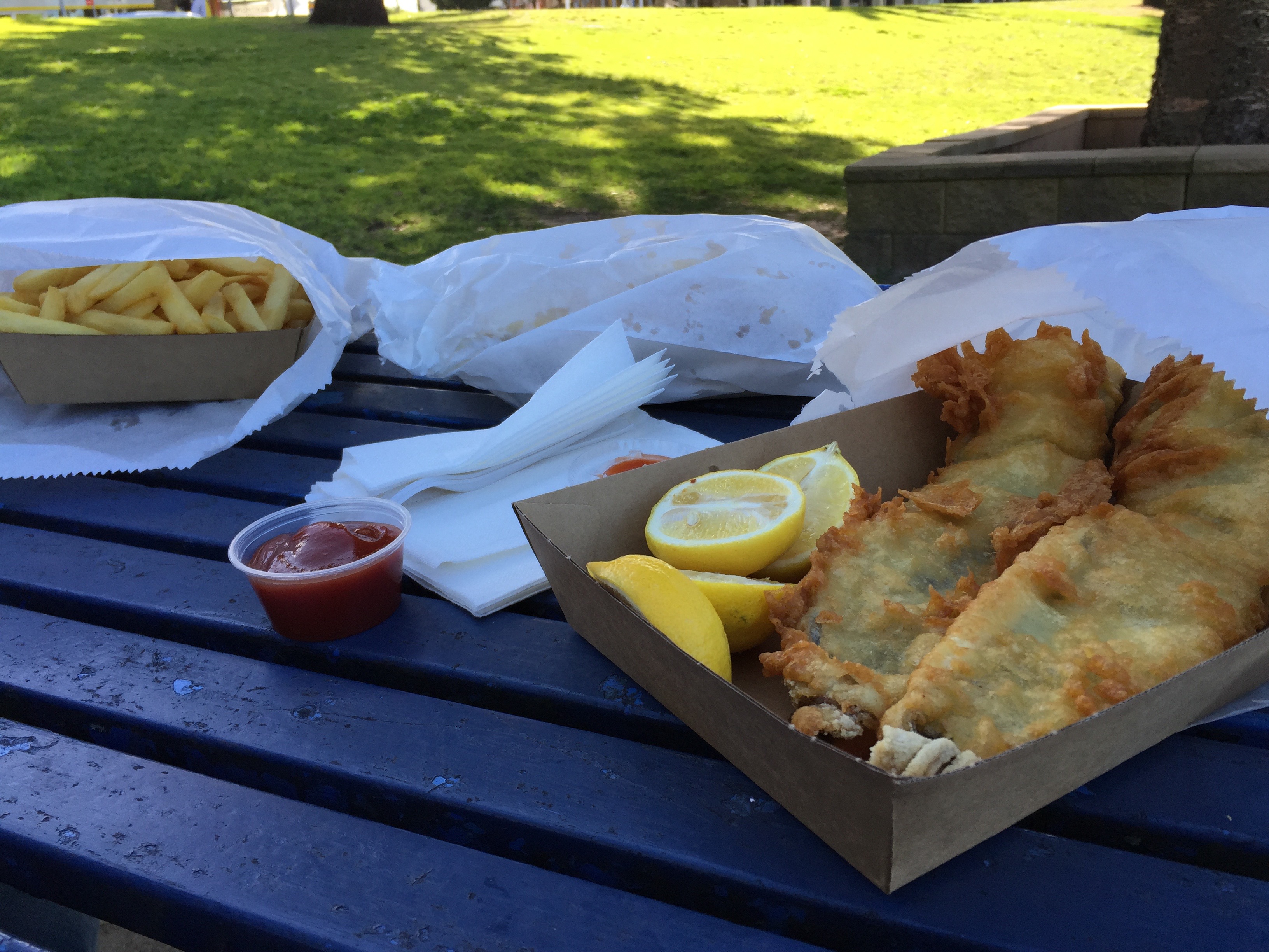 Angekommen mussten wir uns nach den ganzen Anstrengungen natürlich erst mal stärken, und womit geht das denn besser als „Fish & Chips“.