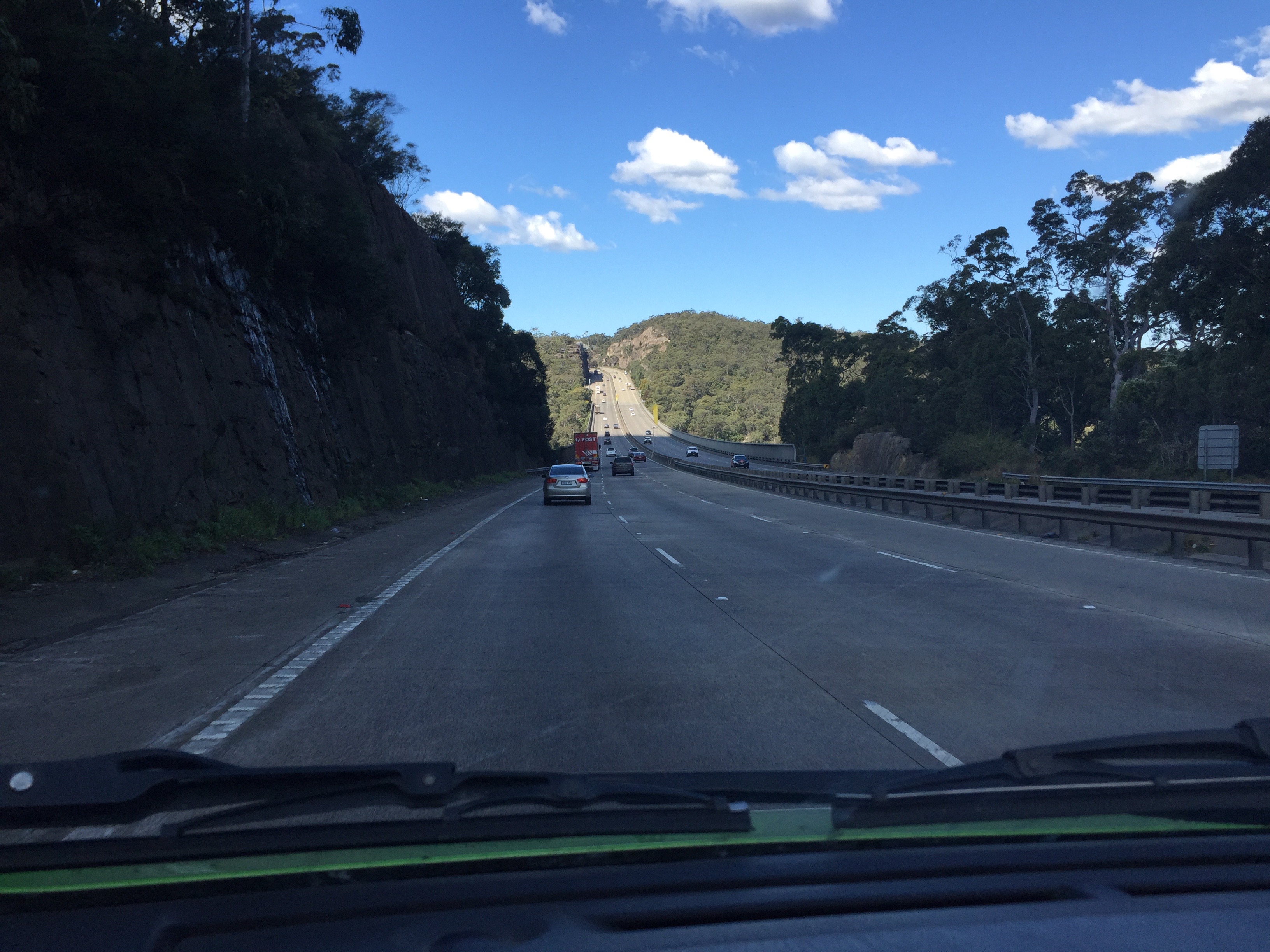 Anschließend wurde unser Viktor leider zum Sorgenkind, so dass wir anstatt weiter zu fahren, erst ein mal zurück nach Sydney mussten. Hier wurde Viktor ausgetauscht. Jetzt haben wir Viktor II. Der Weg zum Austausch war mehr als spektakulär. Nicht landschaftlich, sondern Ingenieurstechnisch. Wir mussten nämlich durch einen 10 Kilometer langen Tunnel, der erst unter einem Hafenbecken und dann anschließend unter dem Flughafen entlang führte. An sich nicht spektakulär, aber wir sind eben nicht in Deutschland. Schon mehrere Kilometer vorher wurde man gewarnt alle Fenster zu schließen und Klimaanlagen so einzustellen das sie keine Luft von außen ziehen. Wer das nicht konnte, durfte nicht durch den Tunnel, genauso wenig wie Motorradfahrer oder große LKWs. Ein Grund warum wir Viktor eintauschen mussten waren übrigens seine undichten Türen. Warum das ganze so wichtig war hat man dann auch ganz schnell gemerkt. Schon nach kurzer Zeit roch es in Viktor als wären alle Abgase direkt in unser Auto umgeleitet worden. Auch klare Sicht gibt es in diesem Tunnel nicht, alles steht voller blauem qualm. Das eigentlich gruselige war aber das ständig Wasser von der Decke tropfte, was nicht so spaßig ist, wenn man sich unter dem Hafen befindet. Aber auch das haben wir. und Viktor, überstanden.