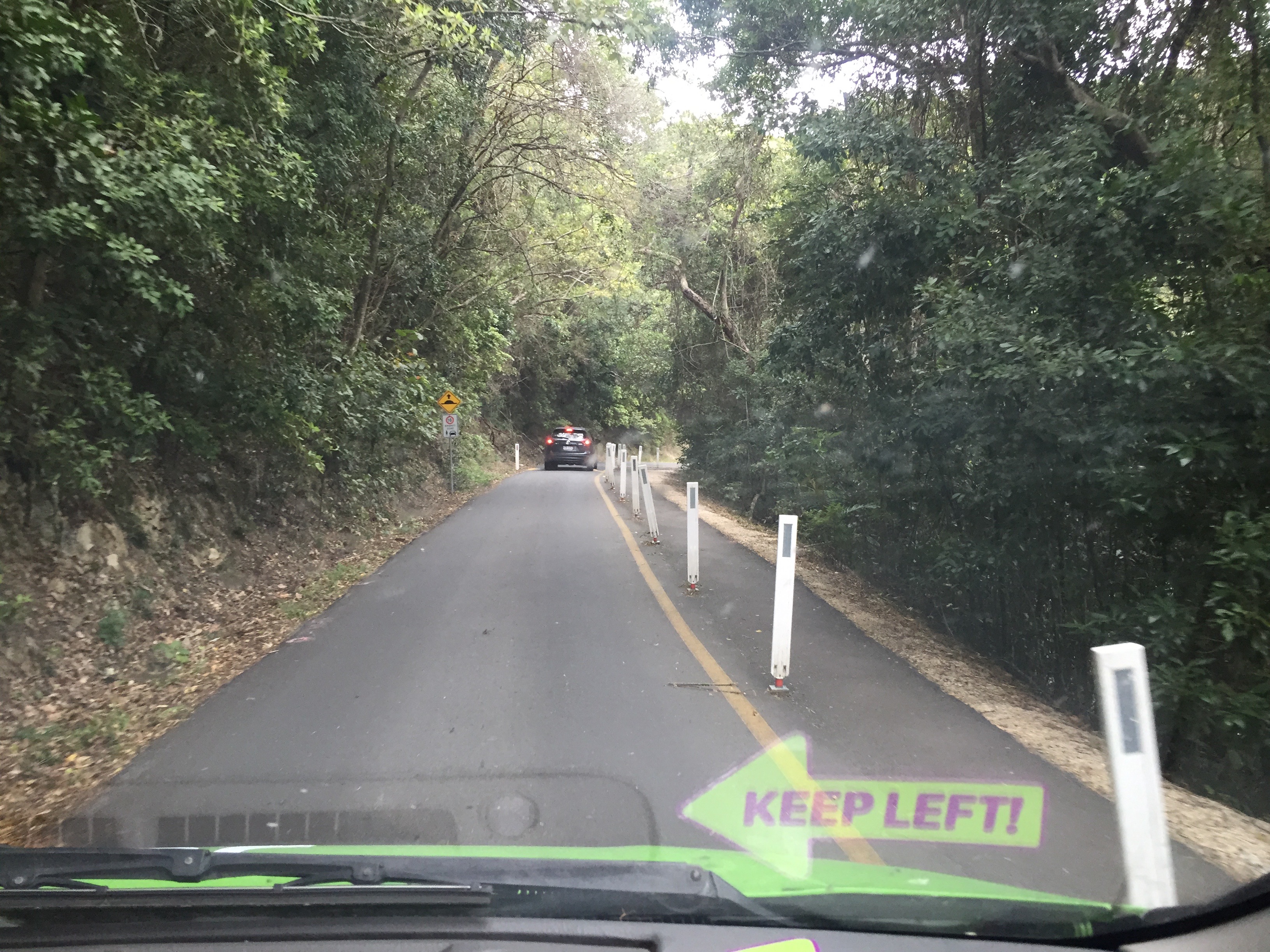 Wir machten uns auf zur Attraktion des Ortes - dem Leuchtturm. Ein 1901 errichtetes weißes Prachtstück hoch oben über Byron Bay, und ganz nebenbei am östlichsten Punkt des australischen Festlands, den James Cook bereits 1770 entdeckte, aber nicht ankerte. War schon beeindruckend der Leuchtturm. Auf dem Meer tosten die Wellen immer mehr, und der Regen kam unaufhörlich näher. Deshalb beschlossen wir unser Tagesziel noch weiter in den Norden zu verlegen, in Hoffnung auf besseres Wetter.