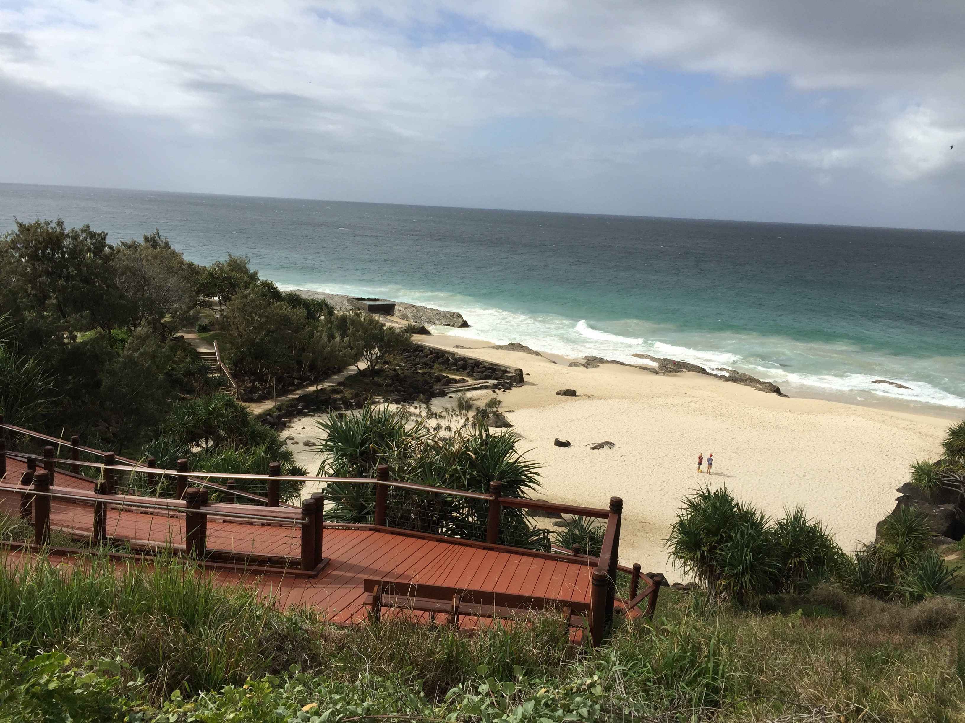 Wir sind nun direkt an der Grenze zwischen New South Wales (der Staat in dem wir bisher immer rumgedüst sind) und Queensland. In der Ferne lässt sich schon die berühmte Skyline von Surfers Paradies erkennen - dazu aber zu gegebener Zeit mehr. Der Ort hier heißt Coolangatta und hat auch einen tollen Strand und einen schönen Aussichtspunkt.