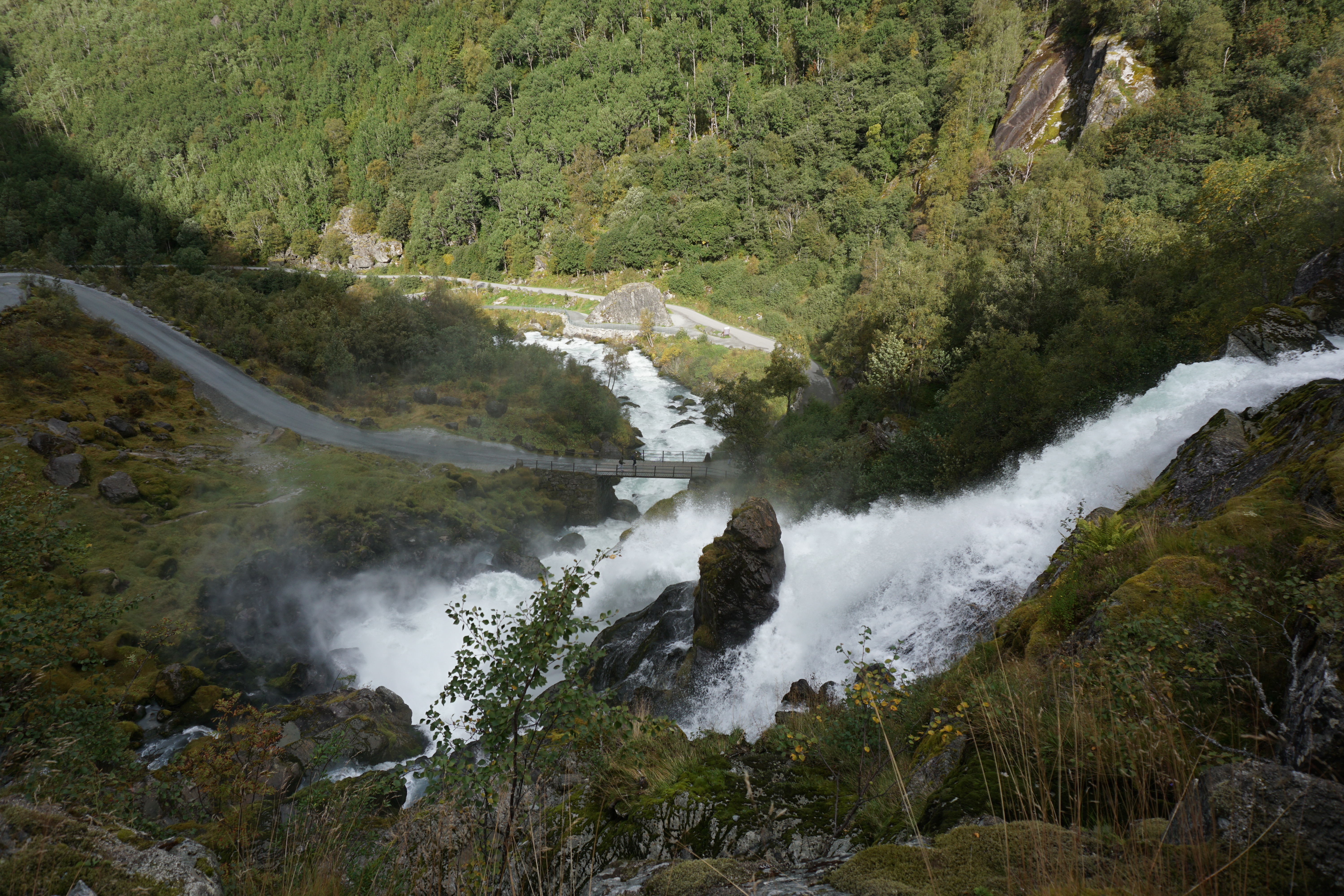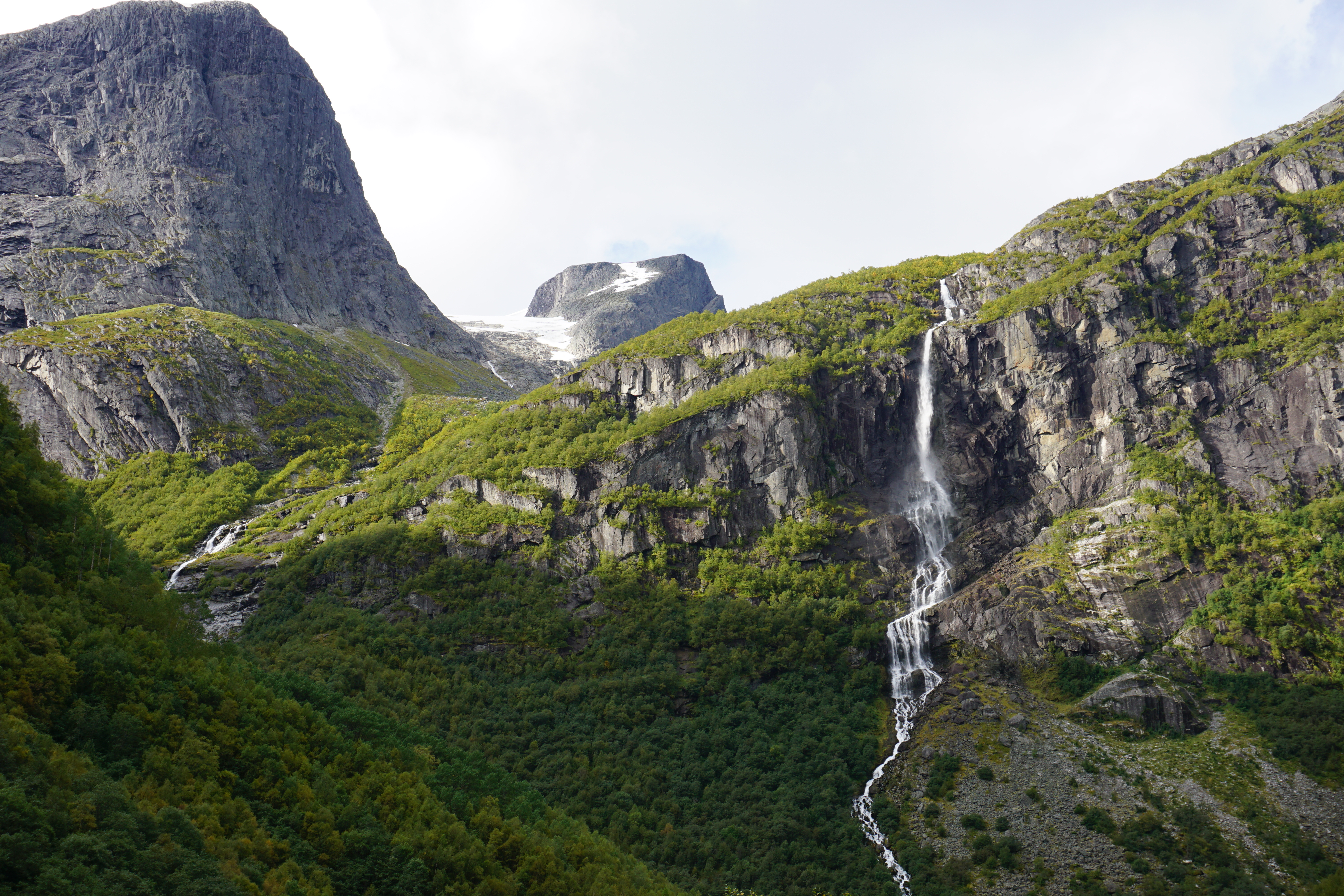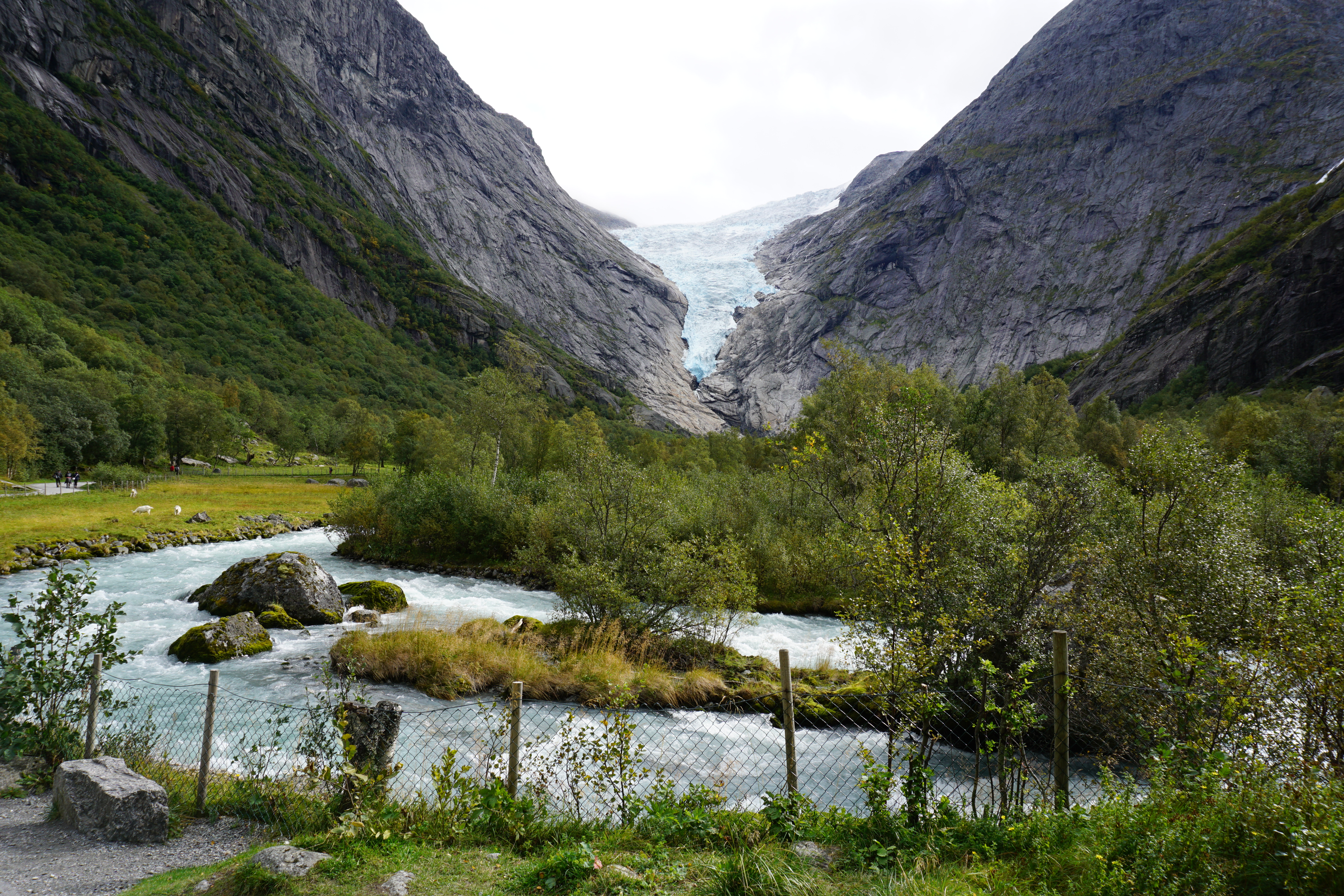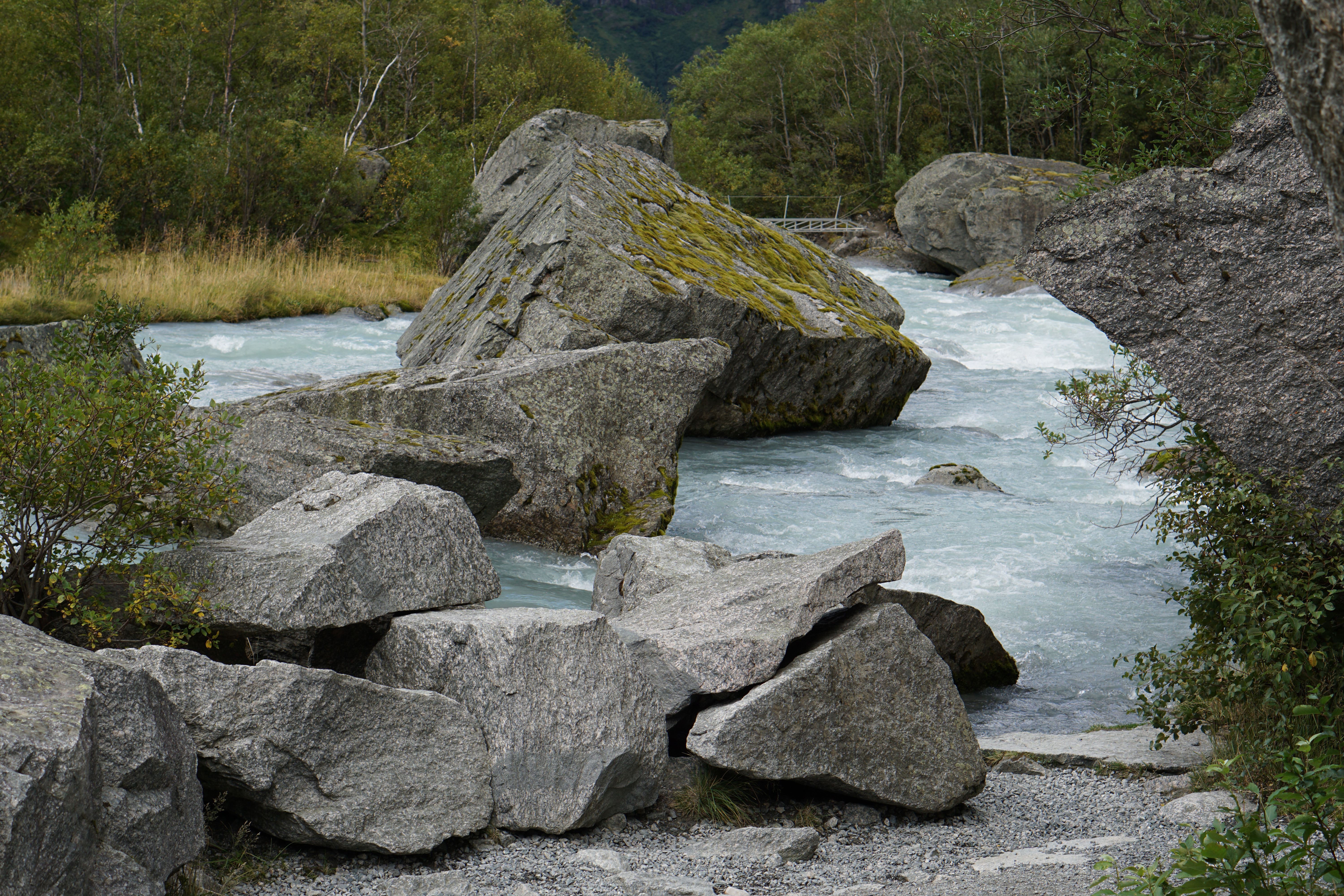 Trotzdem lohnt sich der Marsch entlang des Flusses. Man wird links und rechts dauerhaft mit tollen Blicken für die Anstrengungen belohnt. Man sollte dazu vielleicht noch bemerken, dass es sich hierbei auch "nur" um einen Arm des größten Festlandgletschers Europas handelt - der Jostdalbreen, nach dem auch der Nationalpark benannt ist.