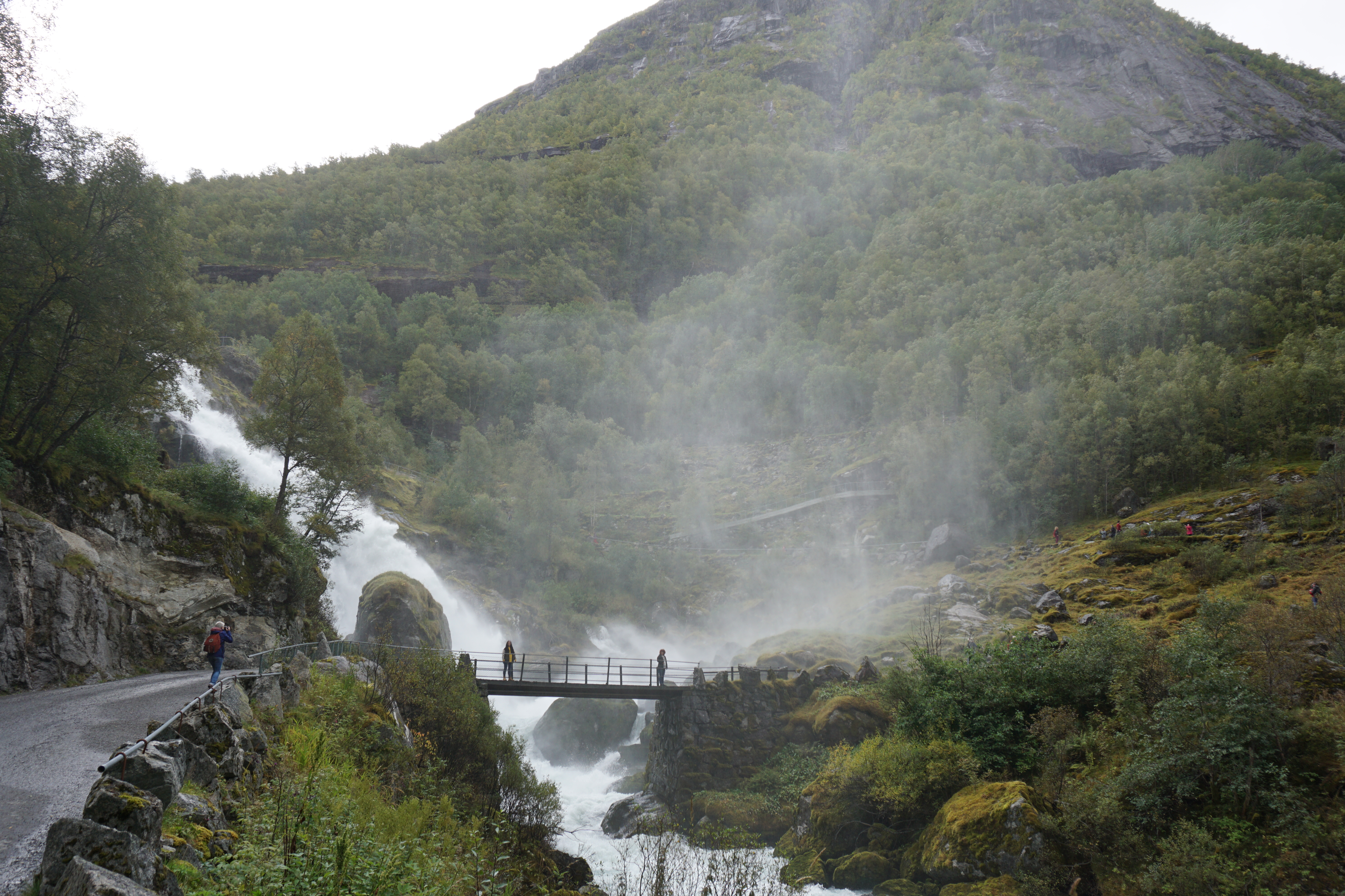 Auch wenn wir es uns nach den ersten Metern fast anders überlegt hätten, entscheiden wir uns aber für den Fußweg, der nach Kaiser Wilhelm benannt ist. Dieser war zu seiner Zeit bereits oft zum Wandern in der Gegend. Anders als die "Straße", die so nicht öffentlich zu befahren ist, führt der Wanderweg direkt am aus dem Gletscher entspringenden Fluss lang, und über viele kleine und große Wasserfälle. Einige von denen so groß, dass sie genug Gischt produzieren, um einen ordentlich nass zu machen.