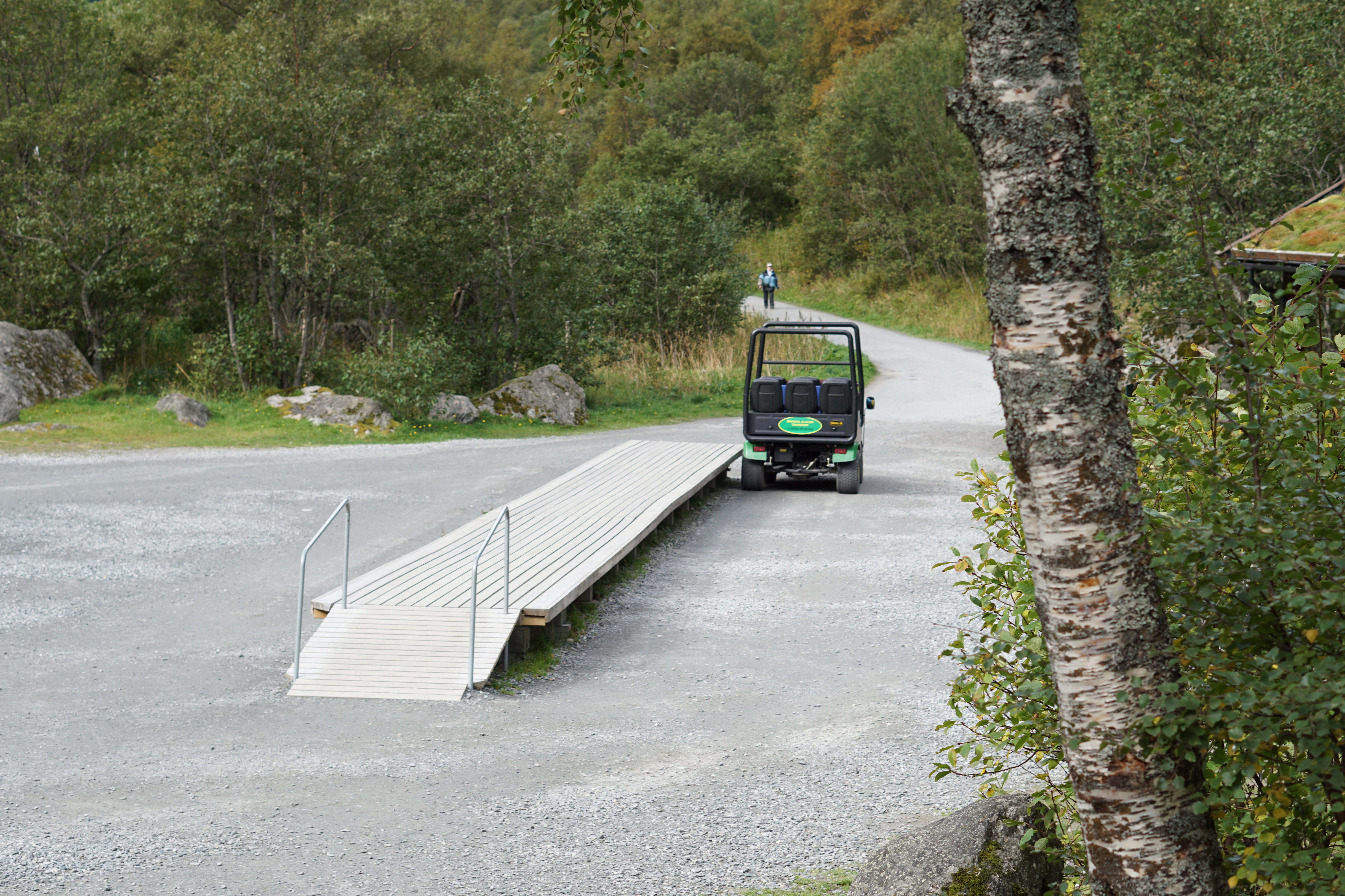 Wenn man diese paar Höhenmeter überwunden hat, gelangt man zum Besucherzentrum, der Ort an dem haufenweise asiatische Touristen aus Bussen geladen werden und in "Trollautos" gesetzt werden, die eine extra dafür angelegte Straße bis zum Gletscher hinauf fahren.