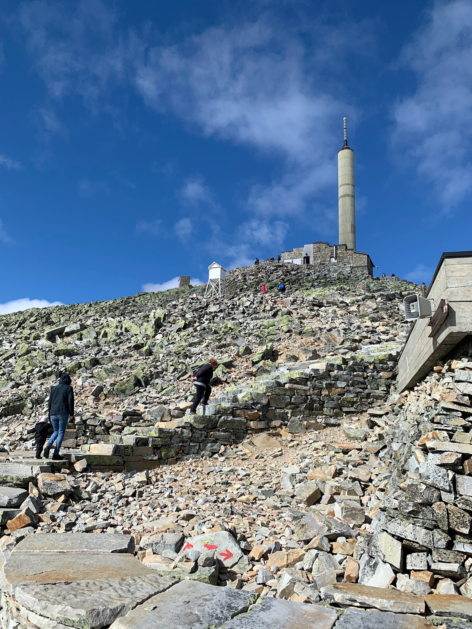 Für uns ist bei 1.800 m Schluss. Der Weg zum Gipfelkreuz ist uns heute etwas zu waghalsig.