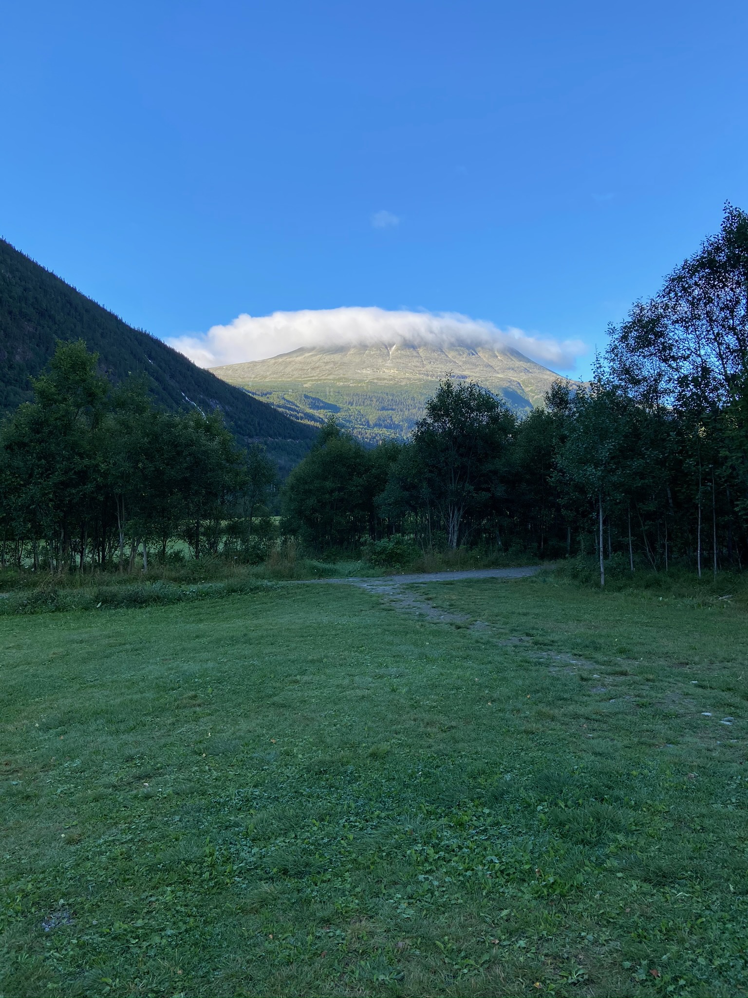 Unser erster Blick beim verlassen des Wohnmobils ging zum Gaustatoppen. Dieser liegt mystisch verhüllt hinter einer Wolke.