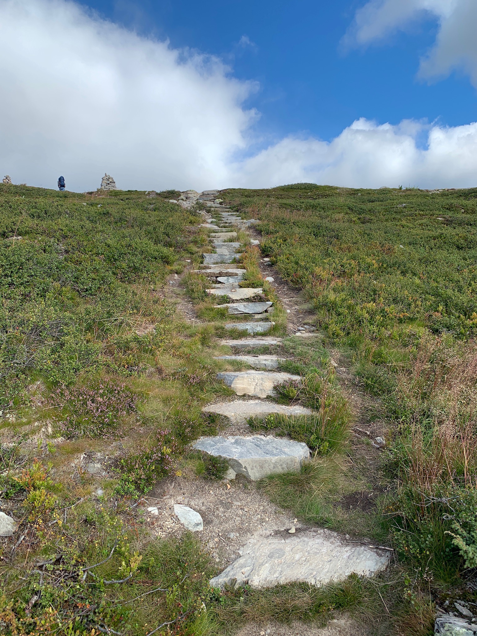 Mittlerweile sind wir über der Baumgrenze, recht und links des Weges wachsen Trilliarden von Blaubeeren, die schmecken fantastisch.