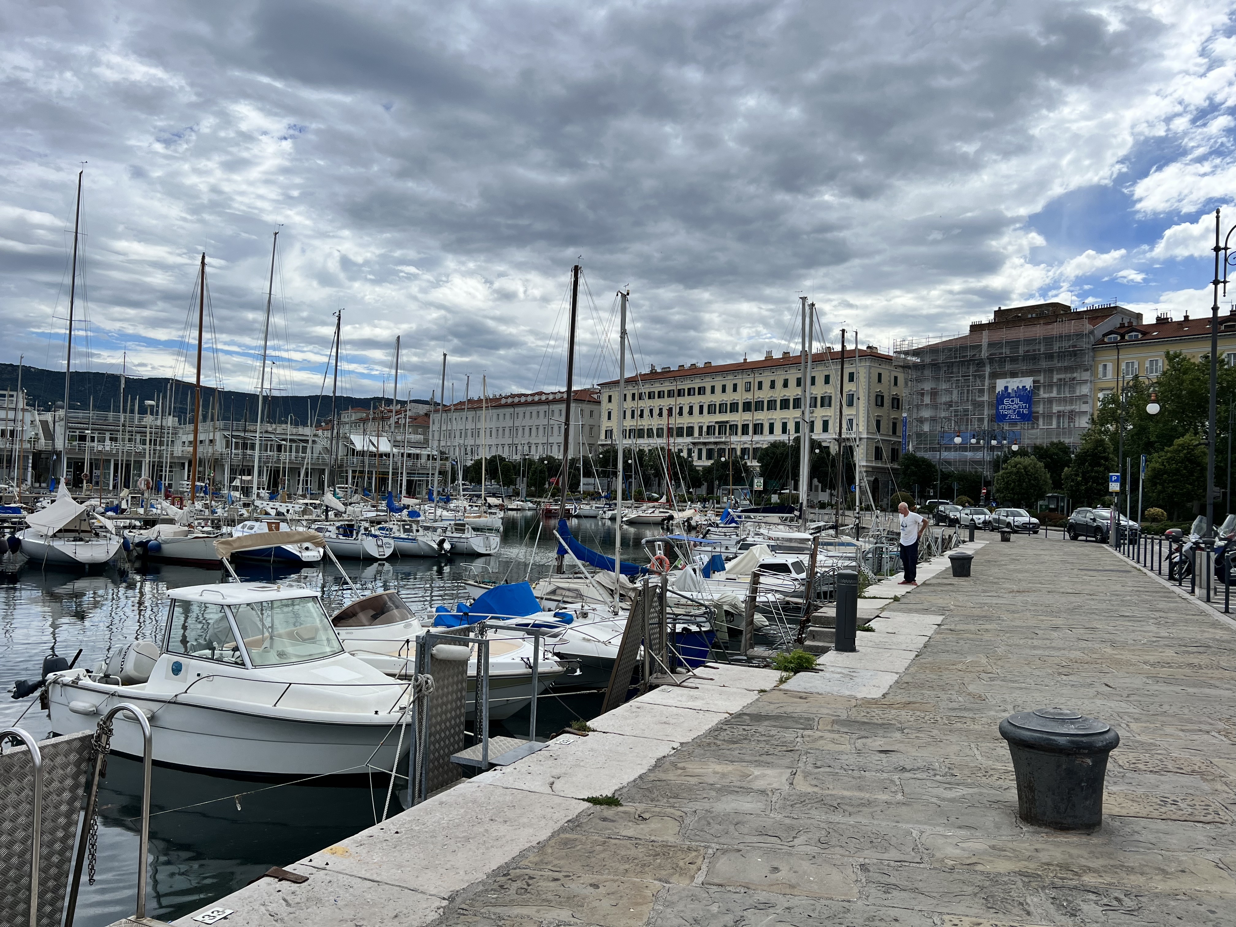 Der Parkplatz befindet sich direkt an der Innerstädtischen Marina. Es scheint als wäre jeder noch so kleine Winkel mit einem Boot zugeparkt. Weil es ja auch Freitag Vormittag ist, stehen auch alle auf ihren Parkplätzen und niemand scheint unterwegs zu sein.