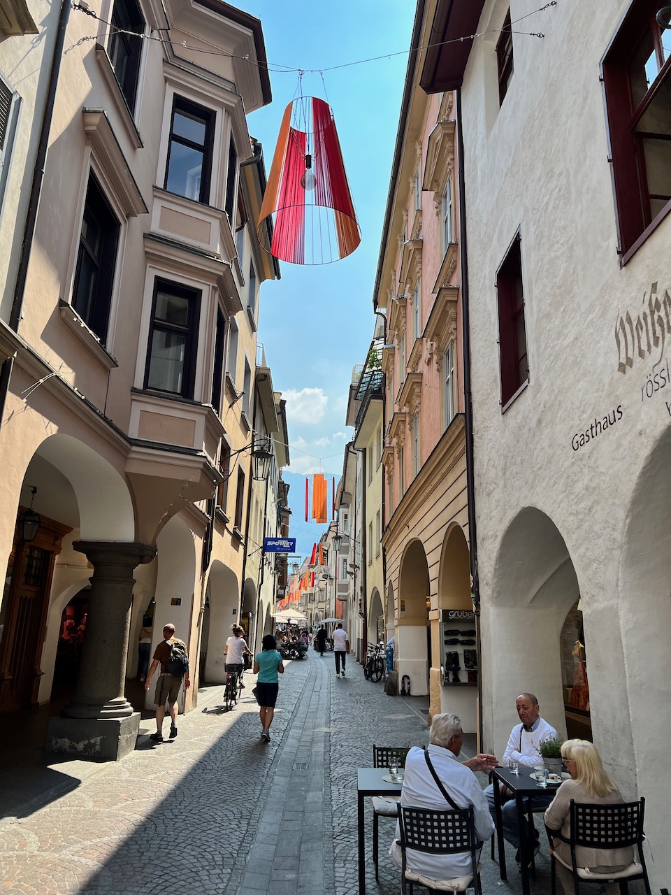 Auch unser Campingplatz hier in Bozen weiß zunächst nicht, ob sie noch einen Platz für uns haben würden in der nächsten Nacht. Es gäbe eine Reservierung für unseren (den letzten freien) Platz, der Mieter hat sich aber nicht zurück gemeldet. Bis 10 Uhr hat er Zeit, jetzt ist es kurz vor 9. Wir packen also soweit alles zusammen und fahren zunächst in die Stadt zum Einkaufen. Gut vorbereitet wie wir eben sind, wissen wir natürlich nicht das heute, am 2. Juni der Nationalfeiertag Italiens ist. 1946 wurde Italien an diesem Tag zur Republik und kehrte der Monarchie den Rücken zu. Das bedeutet natürlich, ähnlich wie bei uns, das Supermärkte eher nicht geöffnet sind. Die Betonung hier muss aber auf eher liegen, auf ALDI ist nämlich verlass, denn Aldi hat auch am Feiertag geöffnet. In der Innenstadt von Bozen allerdings, ist es wie in allen Innenstädten: Parkplätze gibt es eher nicht. Zum Glück ist ja aber Feiertag, und so parken wir unser Wohnmobil einfach direkt vor den Türen eines geschlossenen Geschäfts und hoffen, dass es noch da ist wenn wir wieder kommen. (Spoiler: Es war noch da.)