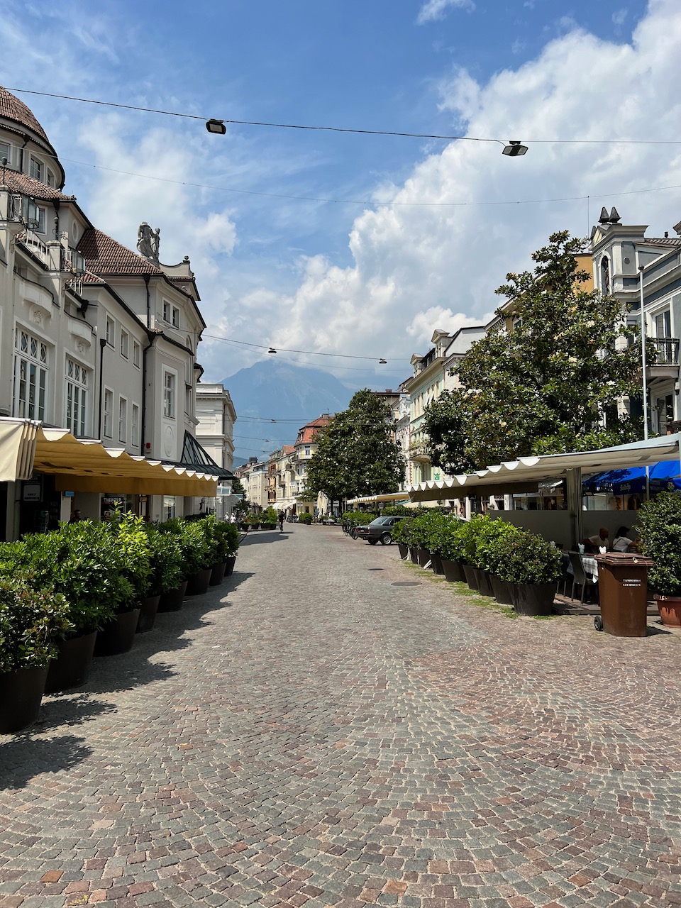Heute sind wir dann doch komplett von unser eigentlichen Idee abgewichen. Eigentlich sollte uns der Weg heute schon zum Gardasee führen. In Anbetracht der Tatsache, dass sich in der Gegend dort allerdings kaum ein brauchbarer und freier Campingplatz finden lässt, entscheiden wir uns noch eine Nacht in Bozen zu bleiben und heute die Nachbarstadt Merana zu erkunden. Die fahrt dort hin dauert für uns gerade einmal 20 Minuten.