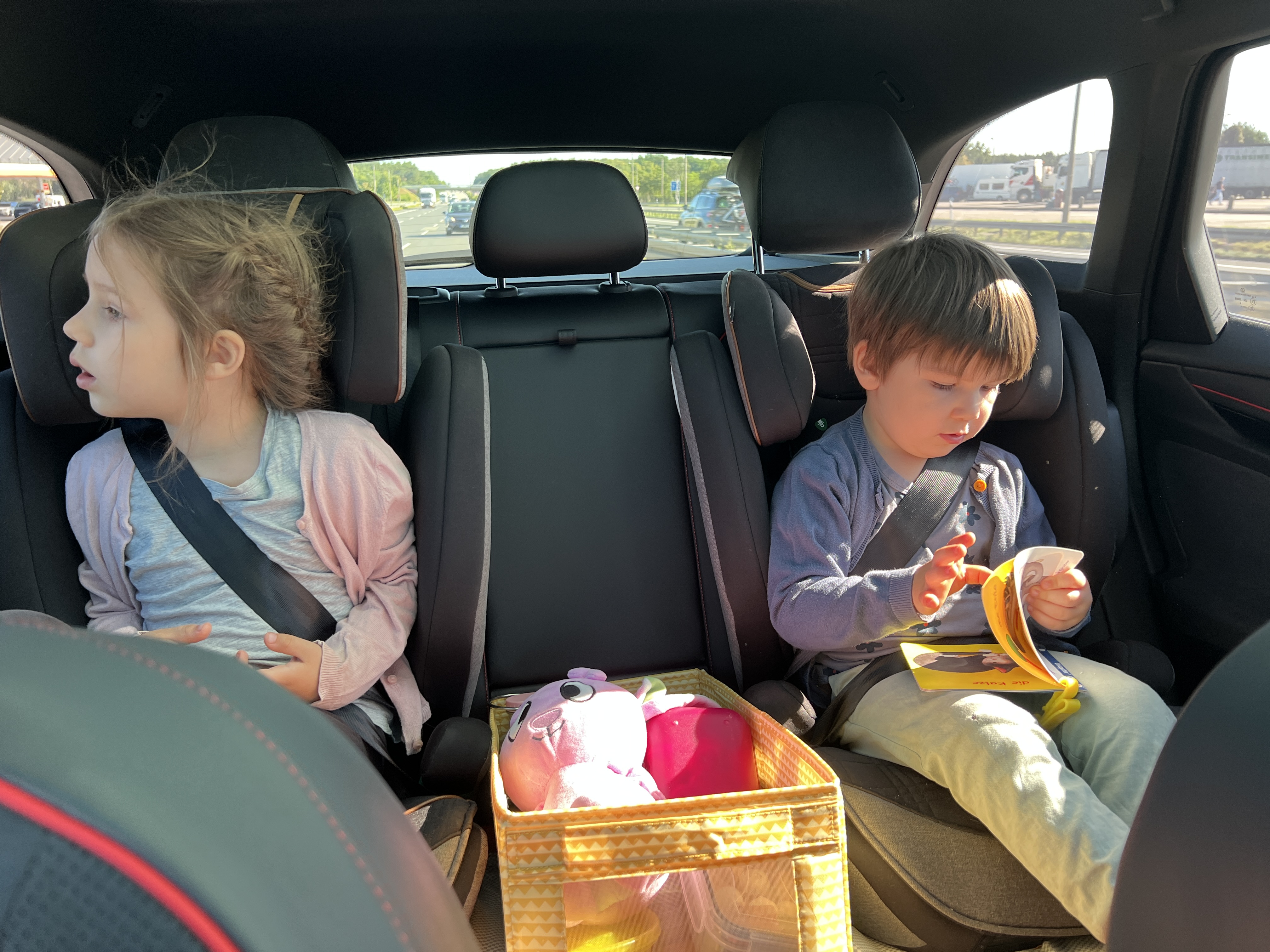 Morgens trödeln wir alle noch ganz schön rum, und haben es eigentlich gar nicht so eilig schnell los zu kommen. Es werden noch die Taschen in den Kofferraum verladen, und die Snacks auf die zwei Kinderplätze aufgeteilt, bevor es dann gegen halb 9 mit einem kurzen Stop beim Bäcker endlich losgeht.