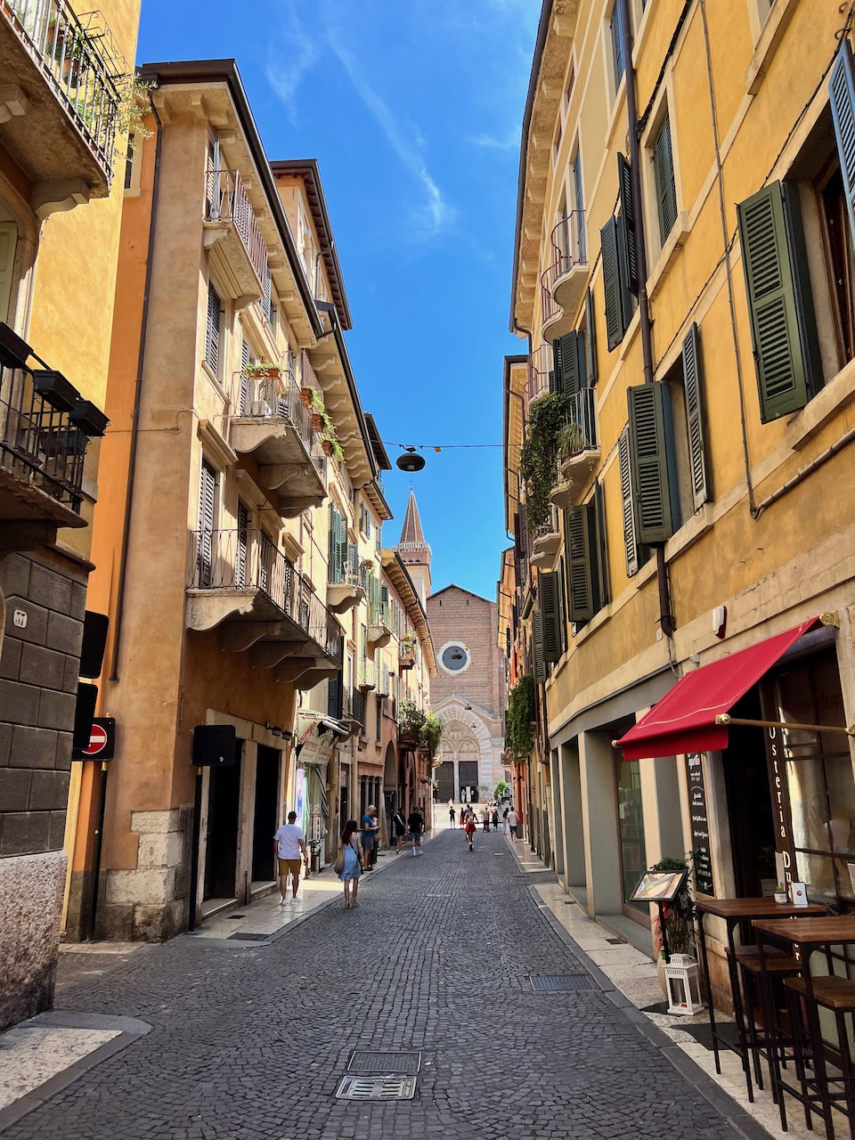 Unser erster Weg des Tages führt uns auf einen Wohnmobilstellplatz kurz vor der Innenstadt Veronas. Eigentlich ist der Platz zum Übernachten da, kann aber auch wunderbar als Parkplatz genutzt werden um von hier die Stadt zu erkunden. Die zugehörigen Toiletten sind aber leider - seit Corona - geschlossen, weswegen ein Übernachten hier (zumindest für uns) nun nicht in Frage kommt. Von hier aus machen wir uns auf den circa 15 minütigen Weg zur Arena von Verona. Das Colosseum in klein sozusagen. Den Anblick konnten wir leider nicht vollends genießen, weil hier die Aufbauarbeiten für die in der Arena stattfindenden Oper.