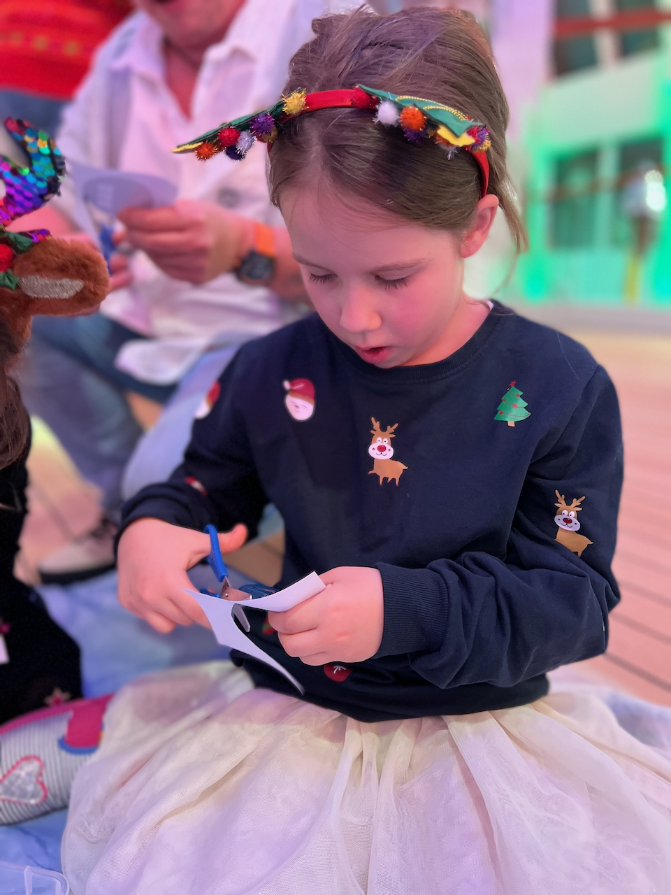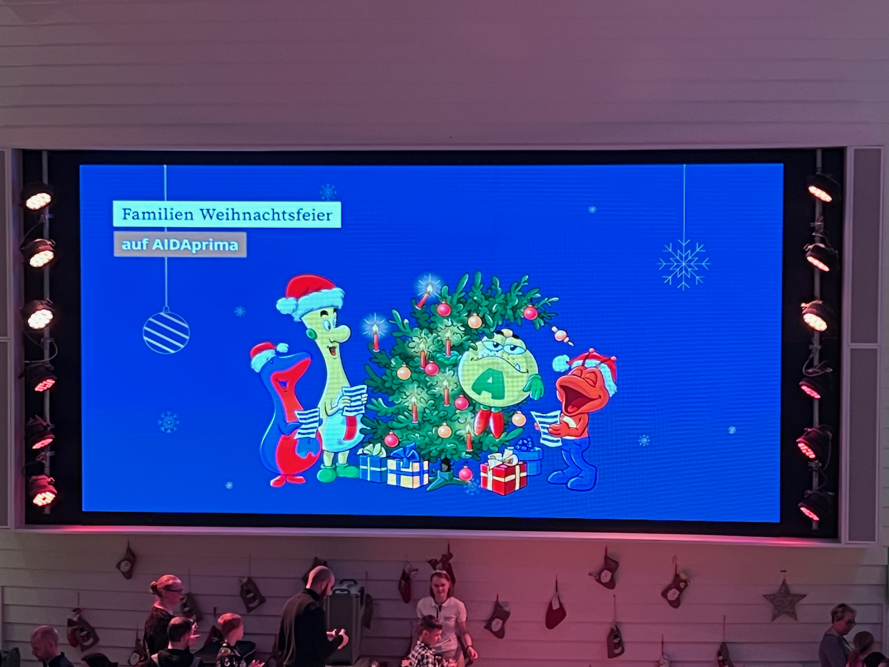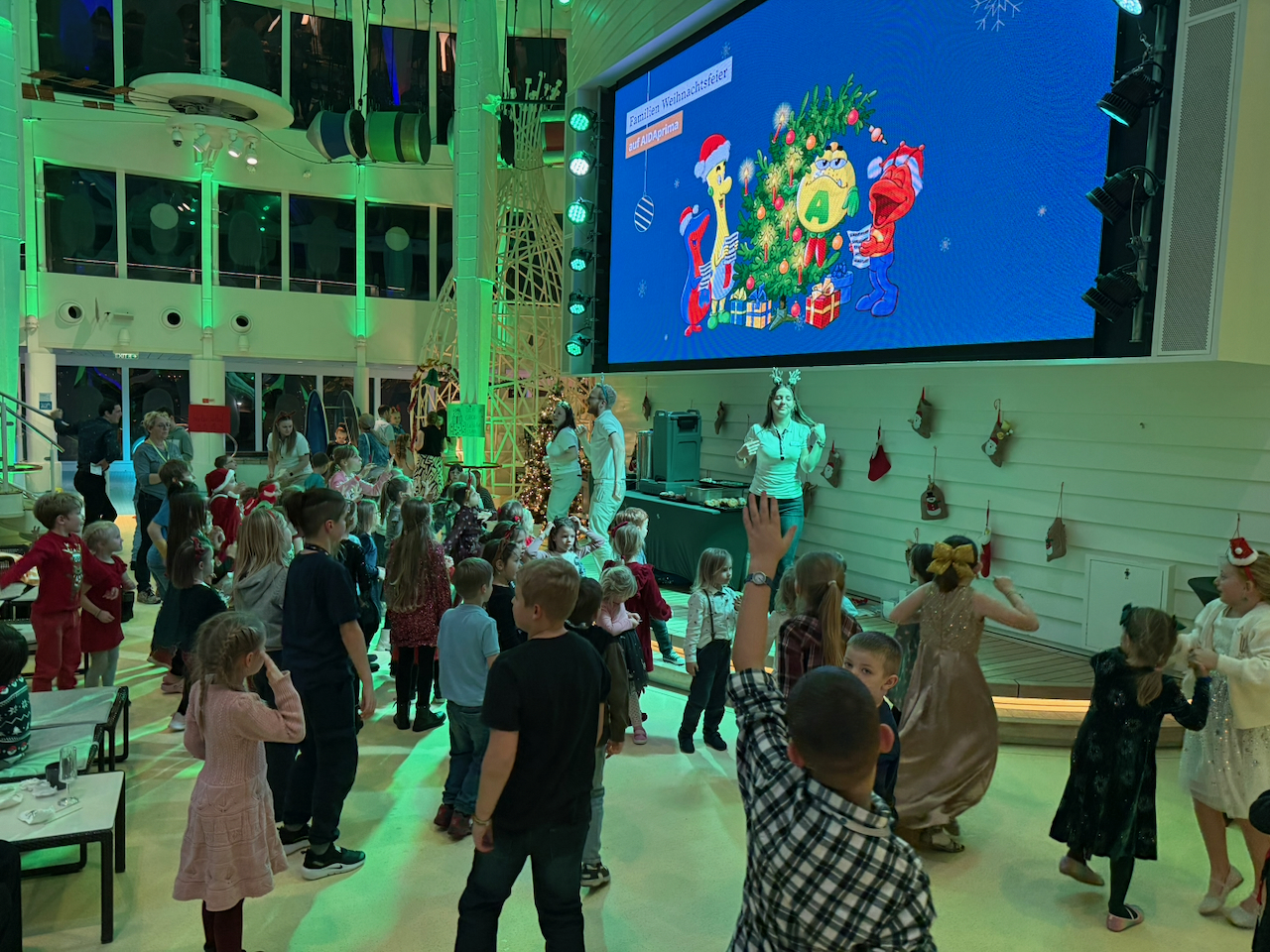 Im Anschluss ging es dann zum Aida Familienweihnachtsfest. Im Four Elements waren vier weihnachtliche Stationen für die Kinder aufgebaut. Es gab Dosenwerfen, Rentier reiten, Pakete stapeln und Anstecker gestalten. Natürlich durfte auch die ClubbieDisco nicht fehlen. Glücklich sind wir abends alle ins bette gefallen.