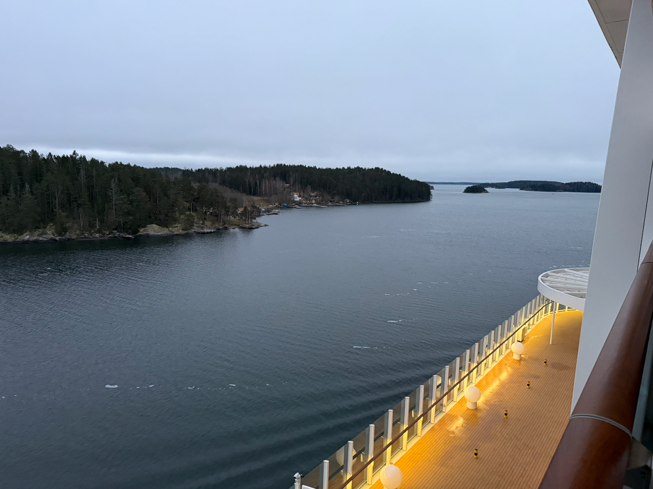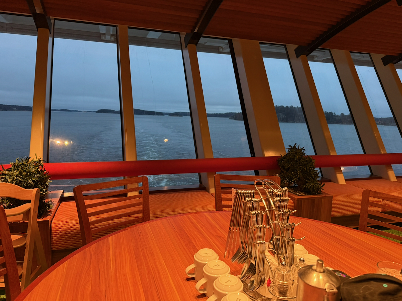 Als wir wach werden, ist es noch dunkel. Draußen sind nur schemenhaft die Umrisse von Bäumen zu erkennen, mehr Ahnung als Anblick. Erst langsam wird klar: Wir sind schon mitten in den Schären. Stockholm selbst ist trotzdem noch mehrere Stunden entfernt – fast vier, wie wir später feststellen. Irgendwie hatten wir vergessen, wie lange man hier durch diese fjordartige Landschaft fährt. Still, eng, fast unwirklich.