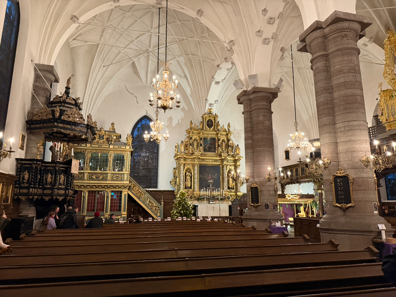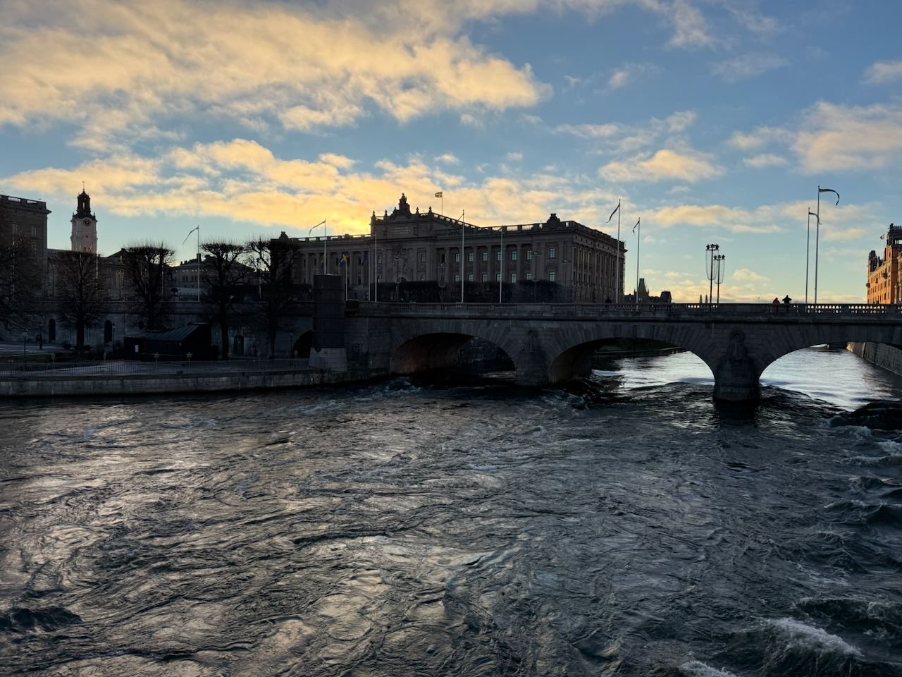 Dann aber eine Abbiegung – und plötzlich sind wir mitten im Geschehen. Das Stadtzentrum öffnet sich vor uns, der Palast kommt in Sichtweite. Vorbei geht’s auch am Vasa Museum, das heute leider geschlossen ist. Auf dem Weg fallen uns die vielen geschmückten Schaufenster auf, weihnachtlich, liebevoll dekoriert. In einem entdecken wir sogar Pippi Langstrumpf. Weil dieses in 2025 ja Jubiläumsjahr hatte, war das etwas ganz besonderes. Ein kleines Detail, das sofort ein Lächeln auslöst. Vor der Oper werden wir dann rausgelassen. Ein echter Prämiumplatz. Von hier ist es ein Katzensprung zum Königspalast und dem Parlament.