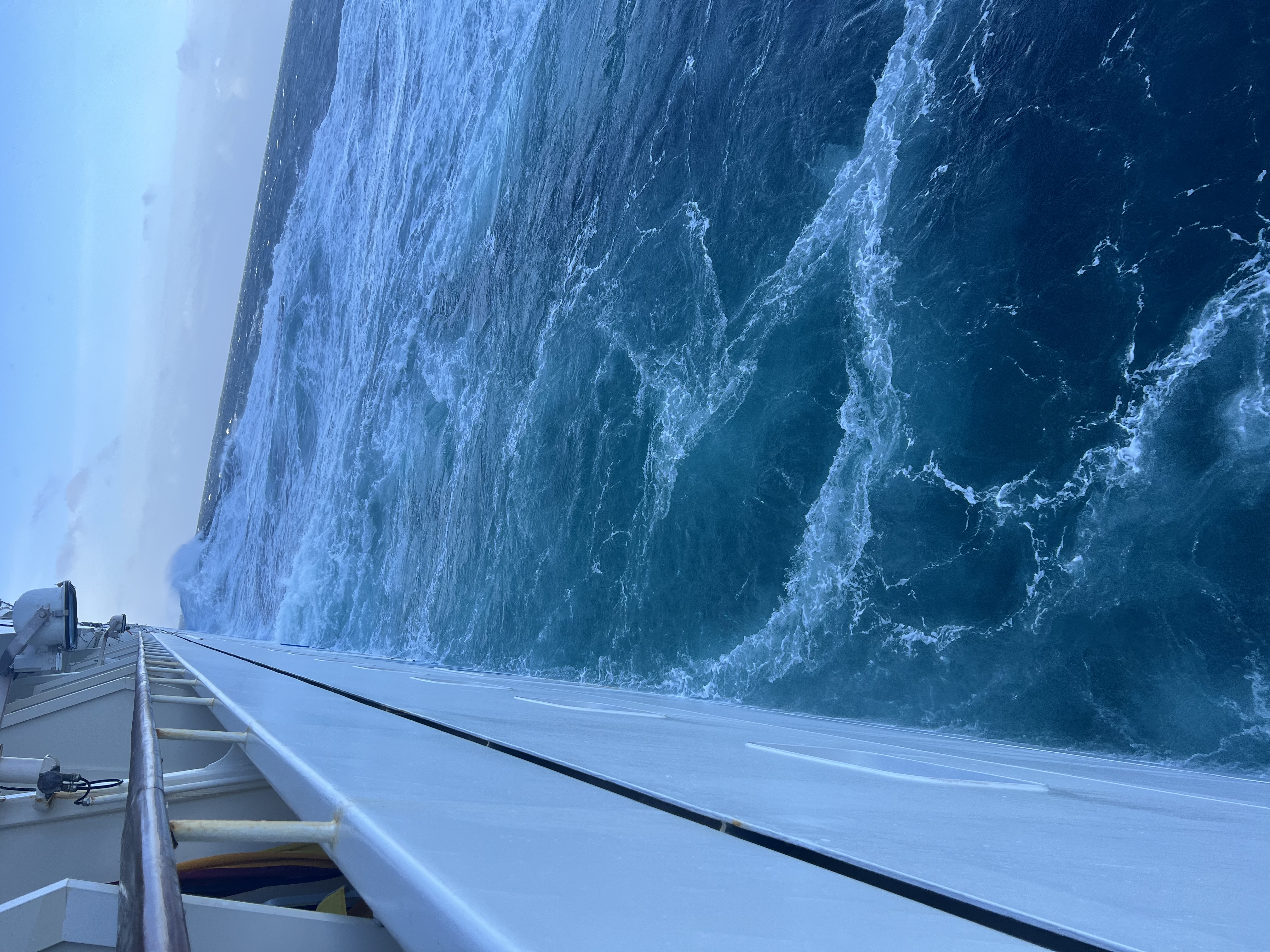 Auf Grund der äußeren Umstände und den bis zu 10 Meter hohen Wellen, findet das Frühstück heute nur für drei von uns statt. Jule besichtigt in der Zeit die hervorragenden medizinischen Einrichtungen an Bord unseres Schiffes. Es gibt aber gleich zwei gute Nachrichten. Die Wellen sollen im Laufe des Tages auf nur noch 6 Meter abschwächen, und Jule hat die „mir doch egal“-Spritze vom Doktor bekommen. Mal gucken ob wir dann später auch irgendwo wieder auf ein Außendeck dürfen - diese sind im Moment nämlich alle gesperrt.