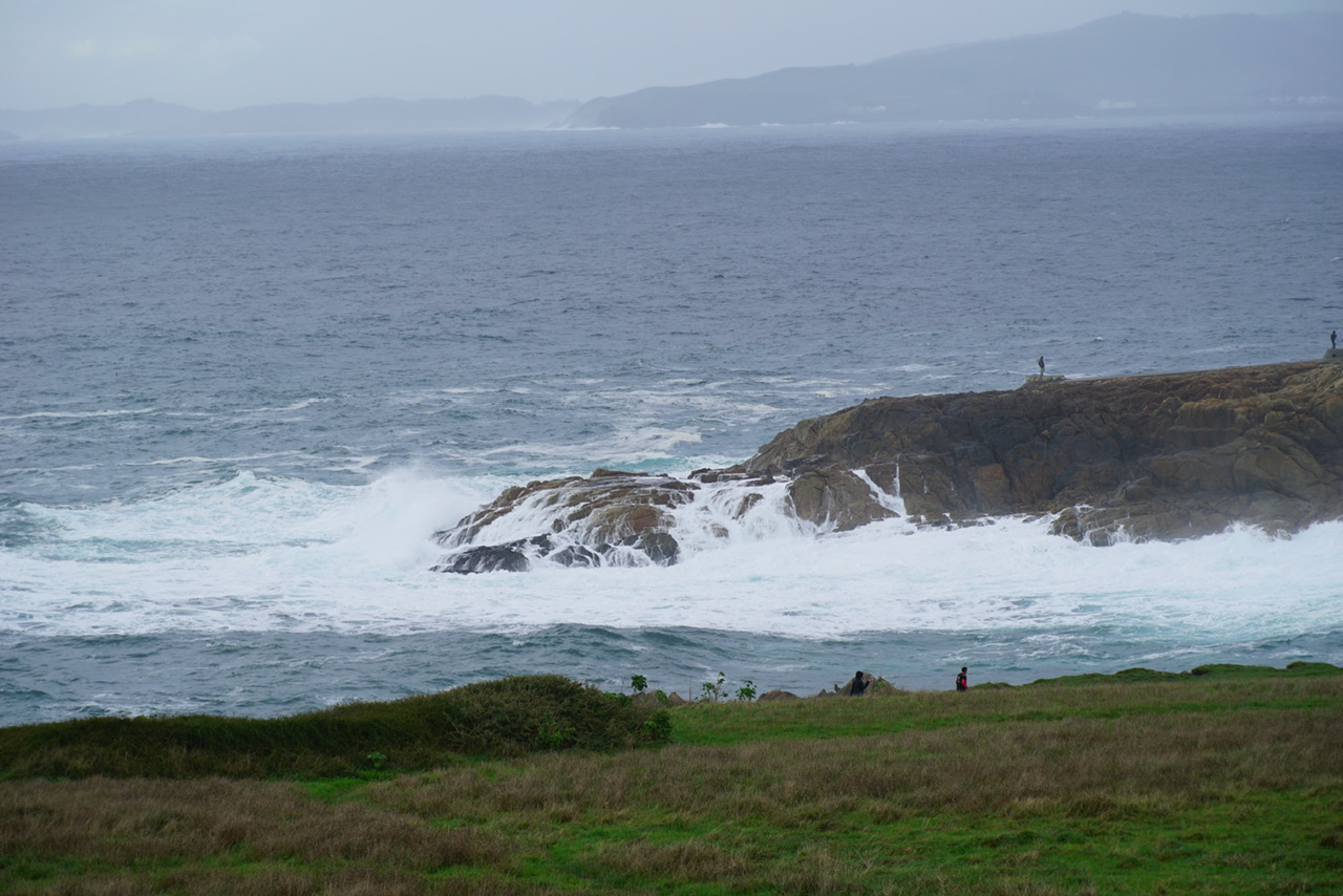 Unser Fahrer Alberto erreichte den Turm pünktlich zum nächsten Regenschauer. Wir liefen aber dennoch bis nach oben. Von dort konnten wir auch eindrucksvoll beobachten, wie die Wellen des letzten Tages an der rauen galizischen Küste zerbrachen.