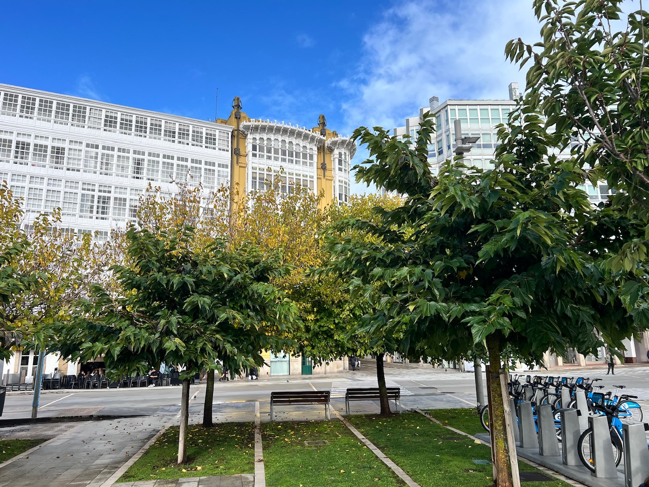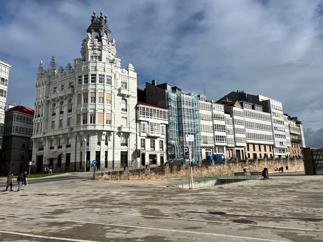 Um halb 11 erwischen wir ein trockenes Zeitfenster und verlassen das Schiff. Vor dem Hafengelände standen einige Touranbieter die einen auf verschiedenste Weisen zum Wahrzeichen der Stadt führen wollten - dem Torre de Hércules.
