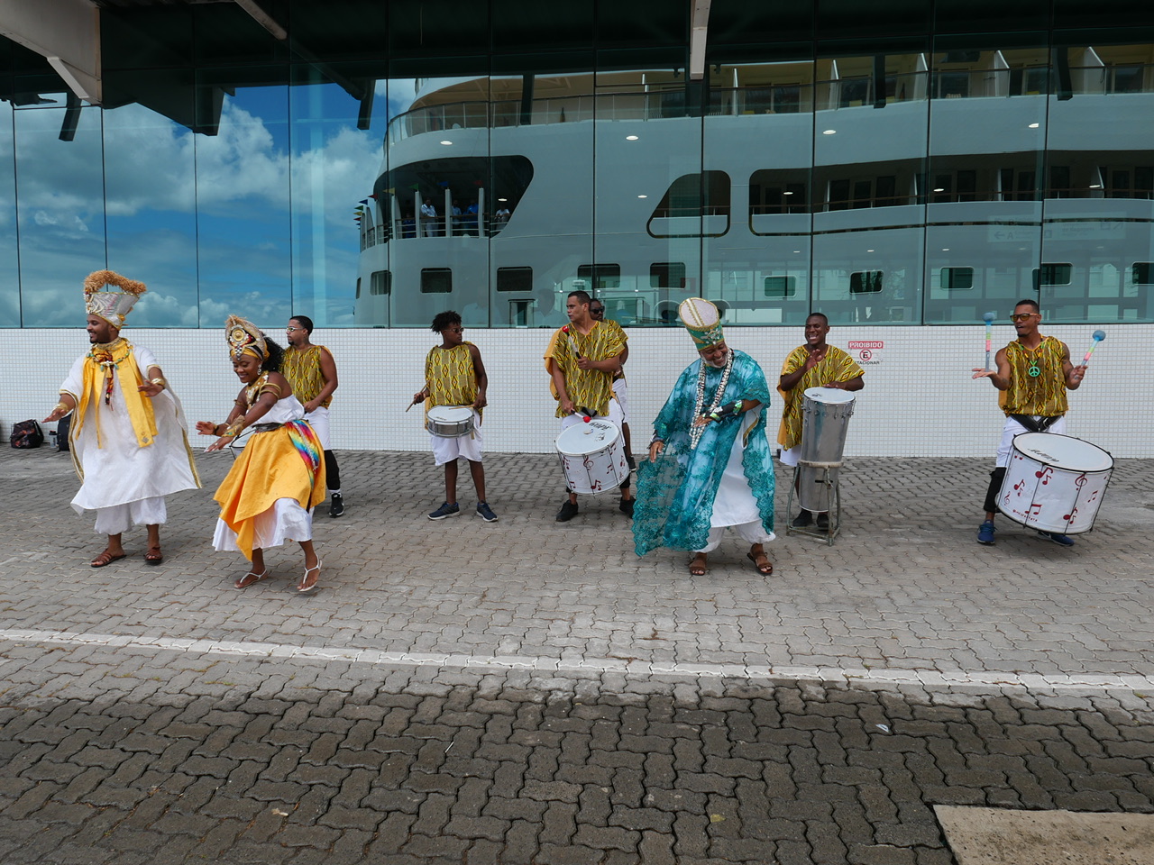 Begrüßt werden wir dann auf typisch brasilianische Weise, durch eine Samba-Trommelgruppe welche uns den Rhythmus der Stadt schon beim Aussteigen zeigt.
