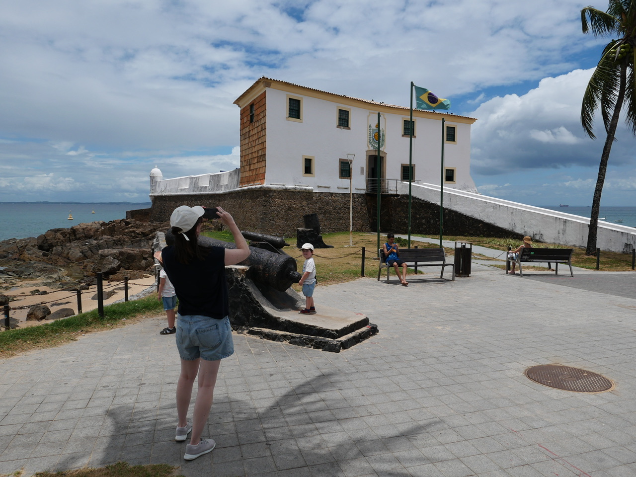 Aber zurück zum Fort. Dieses liegt direkt an einem Strand. Der Taxifahrer, dessen Name uns leider entfallen ist, parkte im Halteverbot aber hat nur nett darauf hingewiesen das wir ja gleich wieder weg sind. Er machte also kurz Pause, während wir bei 700% Luftfeuchtigkeit und 28 Grad das Fort bestiegen. Ein netter Herr gab uns noch kostenfreie Eintrittskarten, sodass wir uns kurz umschauen konnten. Ein kleiner Mitreisender hat sich besonders über die Kanonen auf dem Fort gefreut.
