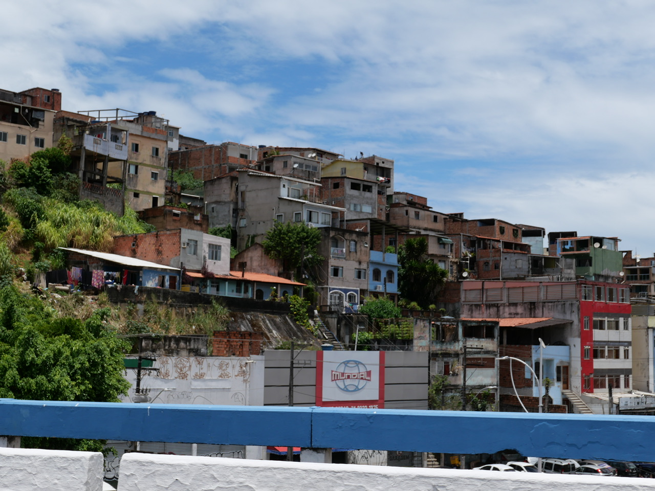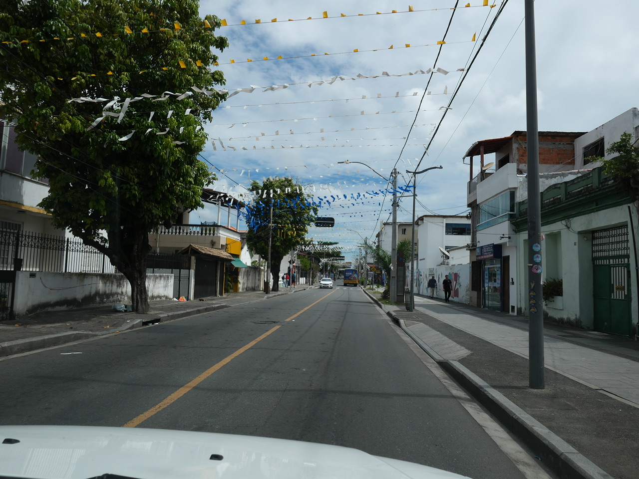 Unser letztes Ziel ist nun noch eine der bedeutendsten Kirchen in der Region, die allerdings ein ganzes Stück außerhalb der Stadt liegt. Gute 20 Minuten sind wir unterwegs. Das ist gar nicht schlimm, denn so sieht man auch Teile der Stadt, durch die Touristen sonst wohl eher selten fahren. Wenn eben auch nur aus dem Taxi. Auch die berühmten Fahnen über den Straßen - für die Salvador ebenfalls bekannt ist - sehen wir nun zum ersten Mal.