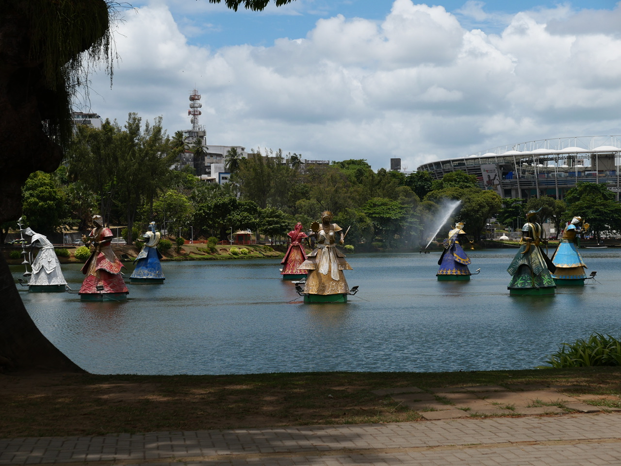 Unser nächstes Ziel war das örtliche Fußballstadion, was mitten in der Innenstadt liegt. Vor dem Stadion erstreckt sich ein schöner See, auf dem mehrere Skulpturen von Tänzerinnen stehen. Hier hätte man sicher einige Stunden verbringen können, dafür fehlte uns bei unserem Landgang allerdings die Zeit.
