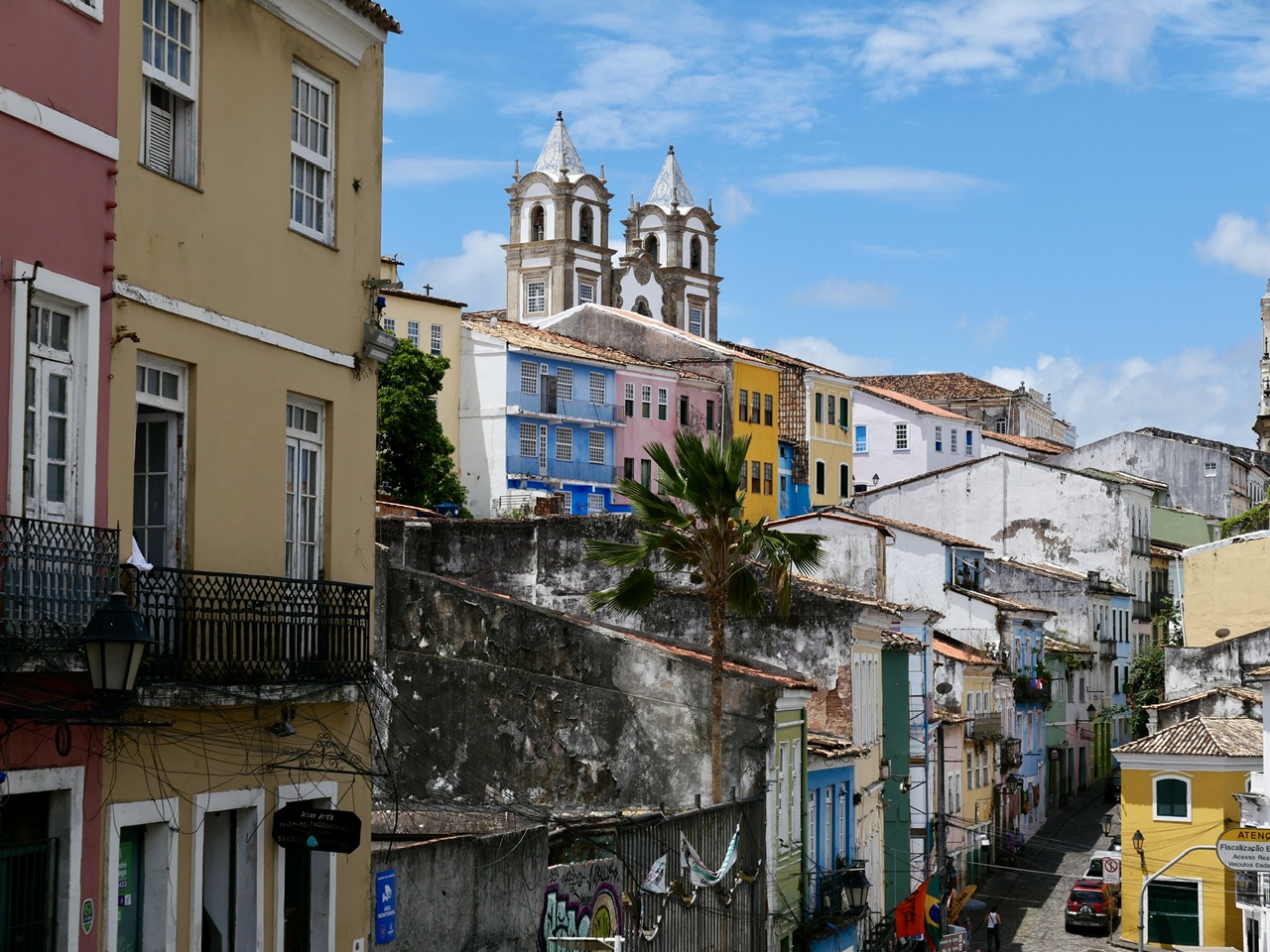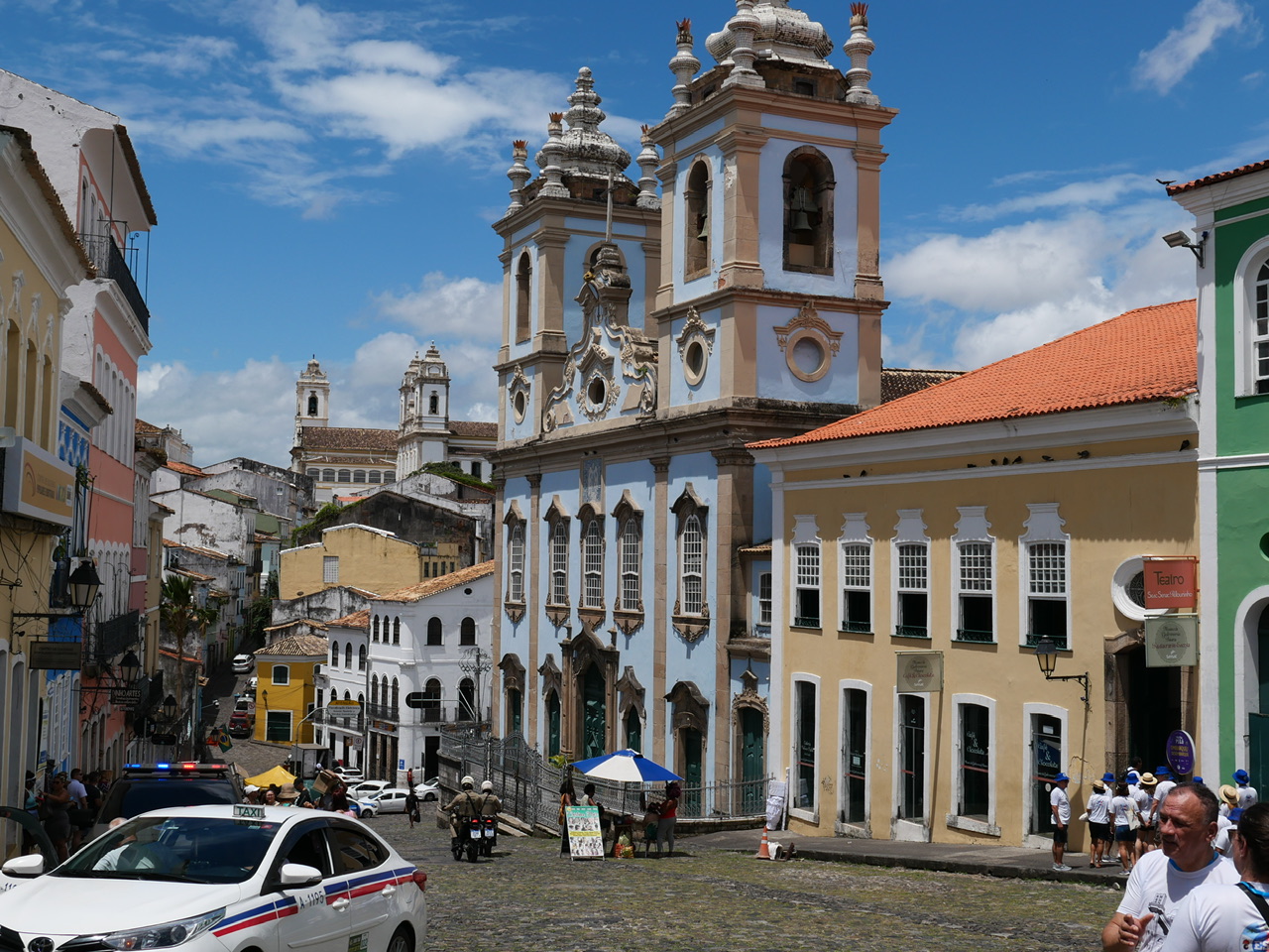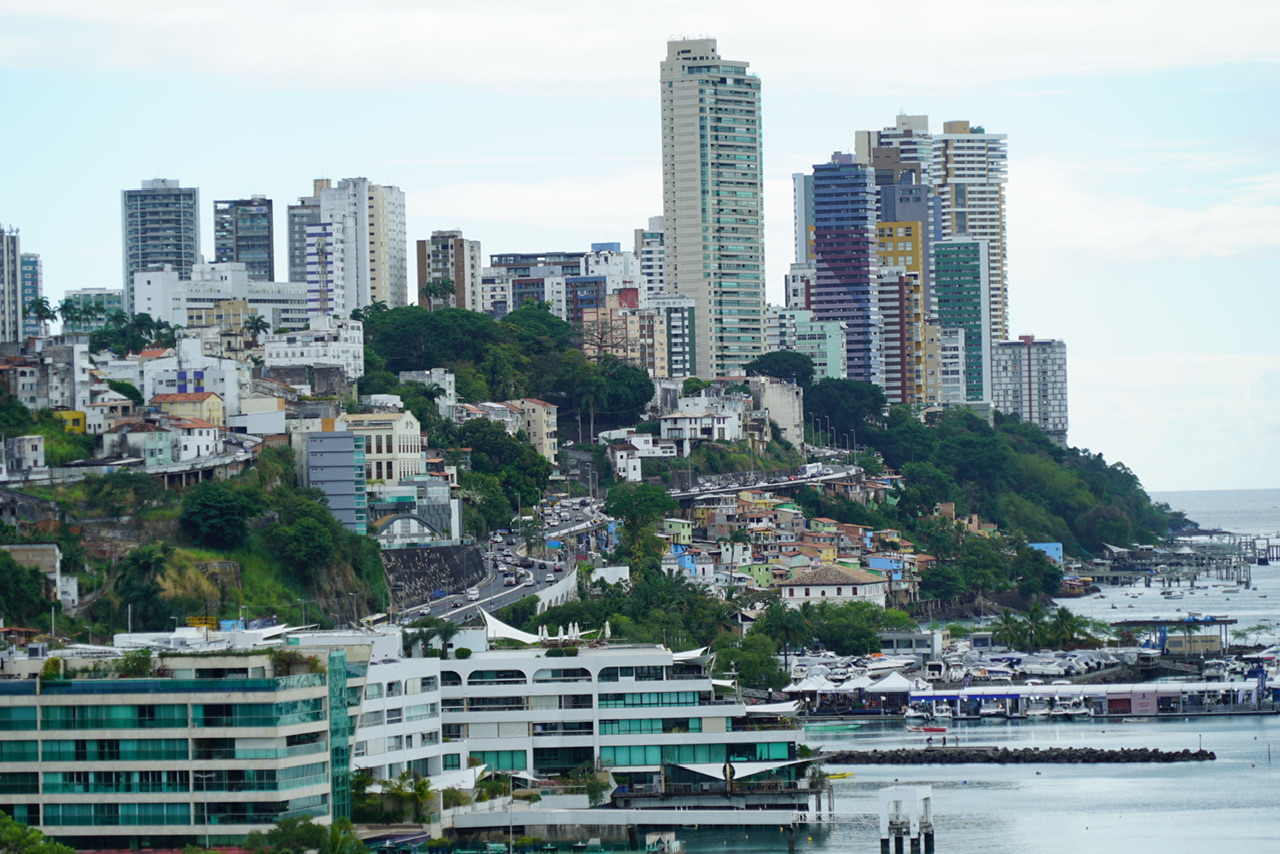 Salvador ist geographisch in zwei Ebenen unterteilt: die Oberstadt (Cidade Alta) und die Unterstadt (Cidade Baixa). Dieser Höhenunterschied wird durch eine steile Klippe markiert, die die Ober- und die Unterstadt trennt. Traditionell war die Oberstadt das politische und religiöse Zentrum, in dem sich historische Gebäude und die prachtvollen Kolonialkirchen befinden. Die Unterstadt hingegen war der Hafenbereich, wo Handel und das tägliche Leben der einfachen Leute stattfanden. Und genau zu diesen Gebäuden der Altstadt führt uns der nächste Stop auf unserer Tour. Wir fahren nun zum ersten Mal in die Oberstadt.