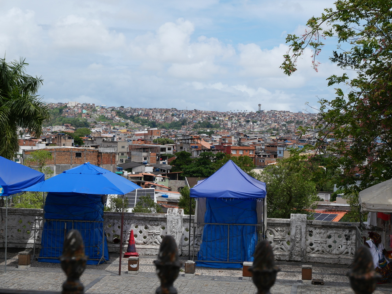 Die Strecke reicht auf jeden Fall für Theo um einzuschlafen. Für ihn fällt der kurze Besuch der Kirche nun also aus. Deshalb mache ich mich mit Lotti allein auf den Weg, die Stufen zur NossoSenhor do Bonfim. Von hier aus hat man einen wunderbaren Blick auf die ganze Stadt und den Hafen, denn die Kirche überragt alles - selbst die Oberstadt.