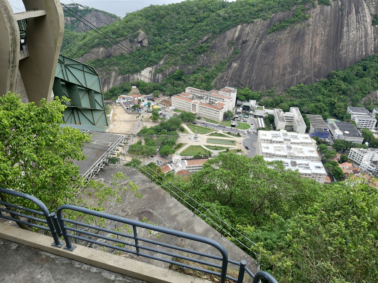 Von dort aus führt uns ein kleiner, bewaldeter Pfad, gesäumt von exotischen Pflanzen und sogar ein paar Stinkfruchtbäumen, zur letzten Gondelstation. Ein kleiner Regenwald mitten in der Stadt! Auch die abschließende Fahrt zurück zum Fuße des Zuckerhuts meistern wir ohne Probleme und sind erleichtert, als wir schließlich wieder in unseren Bus steigen.