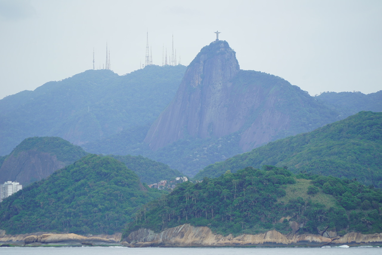 Schon die Einfahrt nach Rio ist ein absolutes Highlight. Durch die Lage in der Bucht, sieht man schon in den letzten zwei Stunden beim Einlaufen in den Hafen die großen Sehenswürdigkeiten vom Schiff aus. Wir werden von der Christus Statue und dem Zuckerhut begrüßt. Außerdem werden wir von schlechtem Wetter begrüßt - etwas was wir gar nicht mehr kennen. Aber noch ist alles im Rahmen, es tröpfelt zwar ein bisschen ist aber trotzdem warm. Außerdem zeigen sich immer mal wieder ein paar Löcher in der Wolkendecke. Also noch kein Grund den Kopf ins Wasser(?) zu stecken.