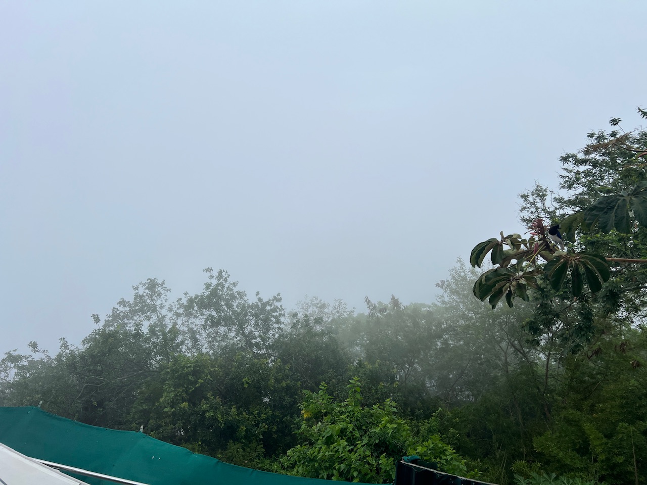 Nachdem unsere freie Zeit oben abgelaufen ist, stellen wir uns trotz des starken Regens in die Schlange zur Talfahrt an. Überraschenderweise bewegt sich die Schlange sogar – die Seilbahn fährt also noch. Die Gondeln selbst sind in dichte Wolken gehüllt, sodass wir sie kaum sehen können. Auf unsere besorgte Frage, ob der Betrieb bei zu starkem Wind eingestellt wird, antwortet Helena mit einem wenig überzeugenden „Ja, bestimmt.“ Trotzdem steigen wir ein, und entgegen aller Erwartungen schaukelt die Gondel kaum. Die Fahrt verläuft ruhig, und wir kommen sicher an der Zwischenstation an.