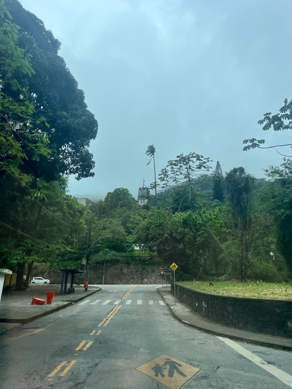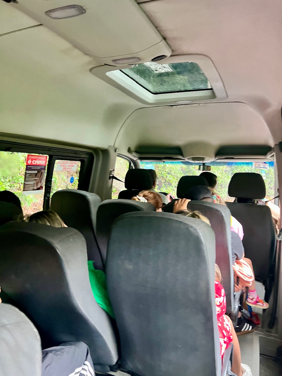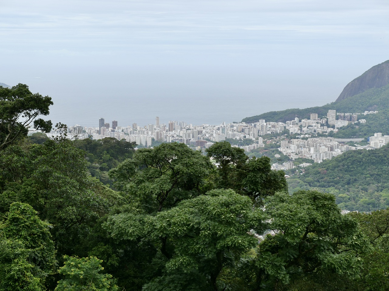 Nach ganz kurzer Fahrt, ändert sich das Bild vor unserem Bus wieder komplett. Wo wir gerade noch mitten in der Stadt waren, sind wir auf einmal mitten im Wald. Man merkt es auch sofort an der Luft. Trotz Klimaanlage im Bus merkt man sofort die sauberere und einfach angenehmerer Luft. Von hinten fragt jemand scherzhaft ob wir noch in Rio sind, aber die Frage ist berechtigt.