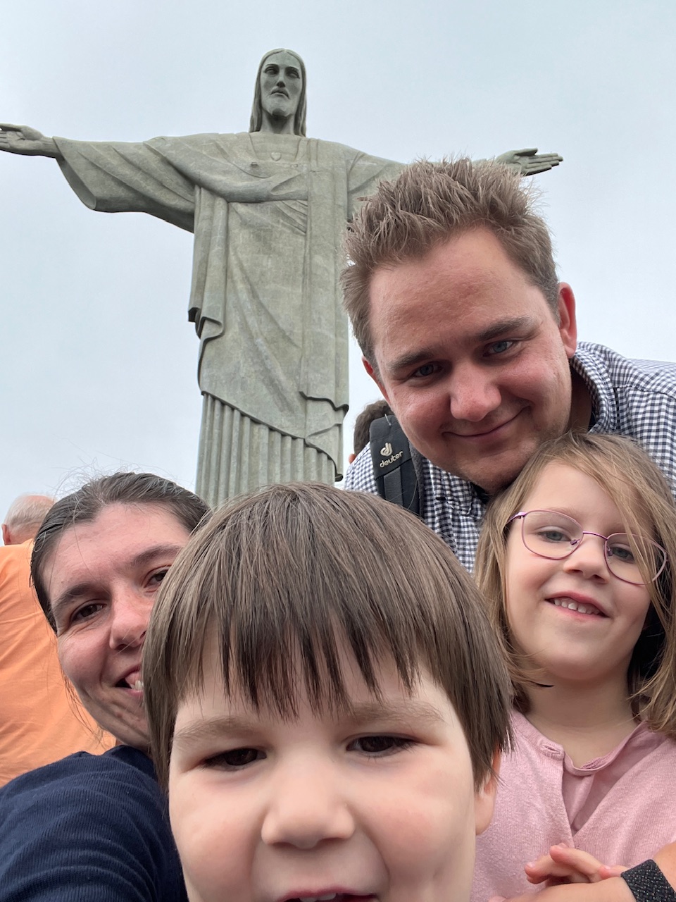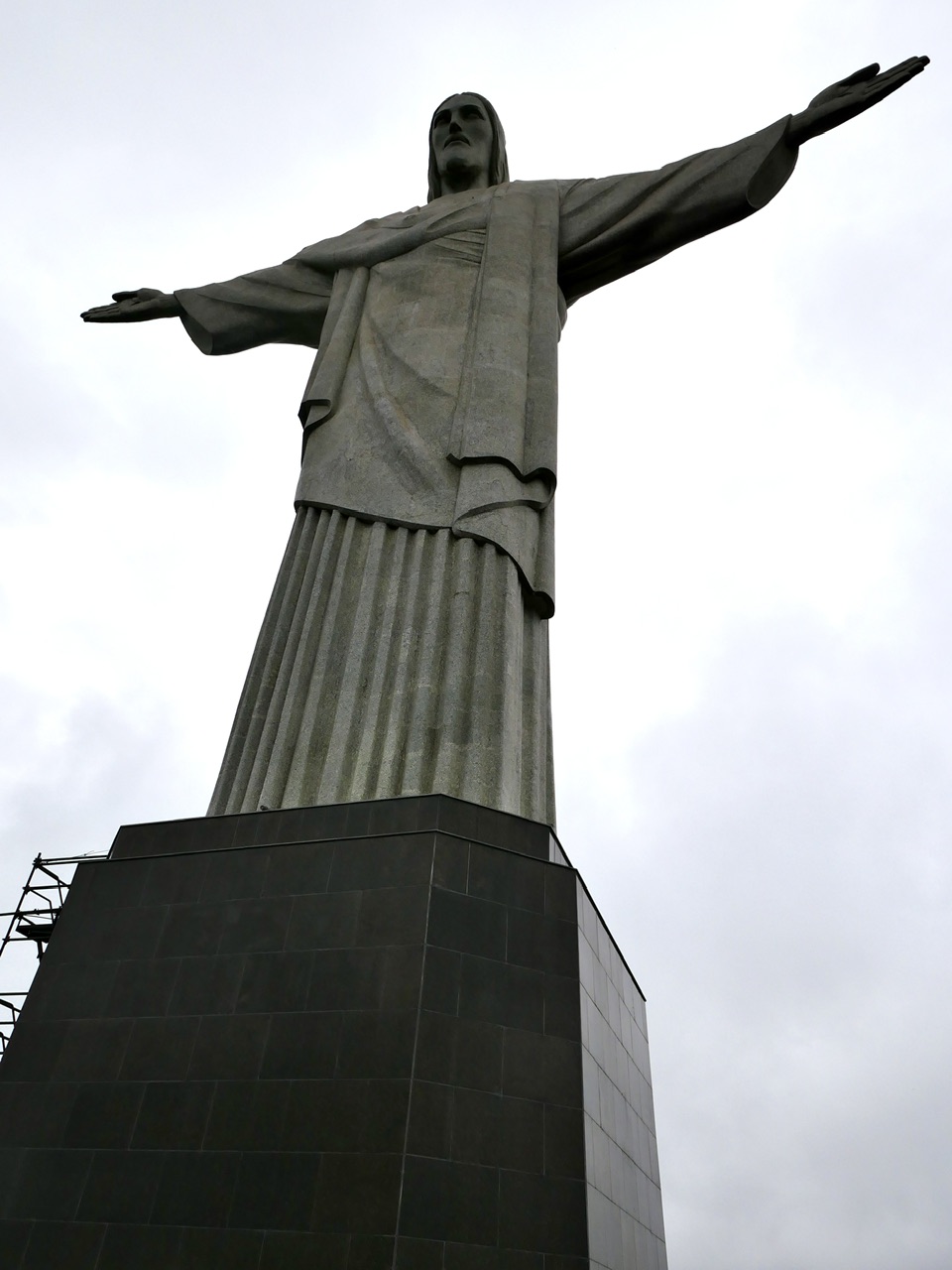 Oben angekommen, stehen wir endlich vor der beeindruckenden Cristo-Statue, die über die Stadt wacht. Mit ihren 30 Metern Höhe – ohne den Sockel – ist sie nicht nur eine der bekanntesten Sehenswürdigkeiten Brasiliens, sondern auch eine der weltweit größten Christusfiguren. Die ausgestreckten Arme der Statue symbolisieren Frieden und Offenheit, und der Blick, der weit über die Stadt und das Meer reicht, verleiht dem Ort eine besondere, fast magische Atmosphäre.