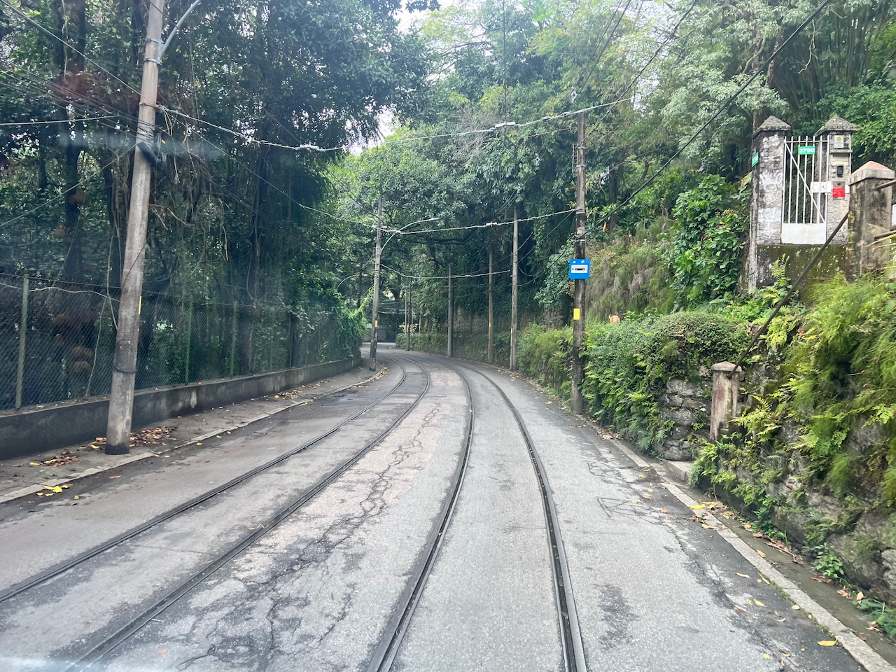 Irgendwann kommen wir dann aber im Touristenzentrum für die Cristo Statue an. Hier hat man dann die Wahl ob man mit der Zahnradbahn, oder mit dem Bus nach oben fährt. Wir nehmen leider den Bus - da haben wir wohl vorher nicht ordentlich gelesen. Hier gibt es noch einen relativ großen Souveniershop und bereits eine tolle Aussicht auf die Stadt. Nachdem wir unseren Bus also alle verlassen haben, steigen wir in den Transportbus um, und werden über die Serpentinen durch den Wald immer höher chauffiert. Auf dem Weg nach oben hört man immer mal wieder ein „oh“ oder „ah“, wenn man einzelne Teile der Statue kurz durch die Bäume sehen kann. Nach der kurzen Fahrt werden wir dann am Bahnhof der Zahnradbahn rausgelassen. Angekommen ist man nun aber immer noch nicht.