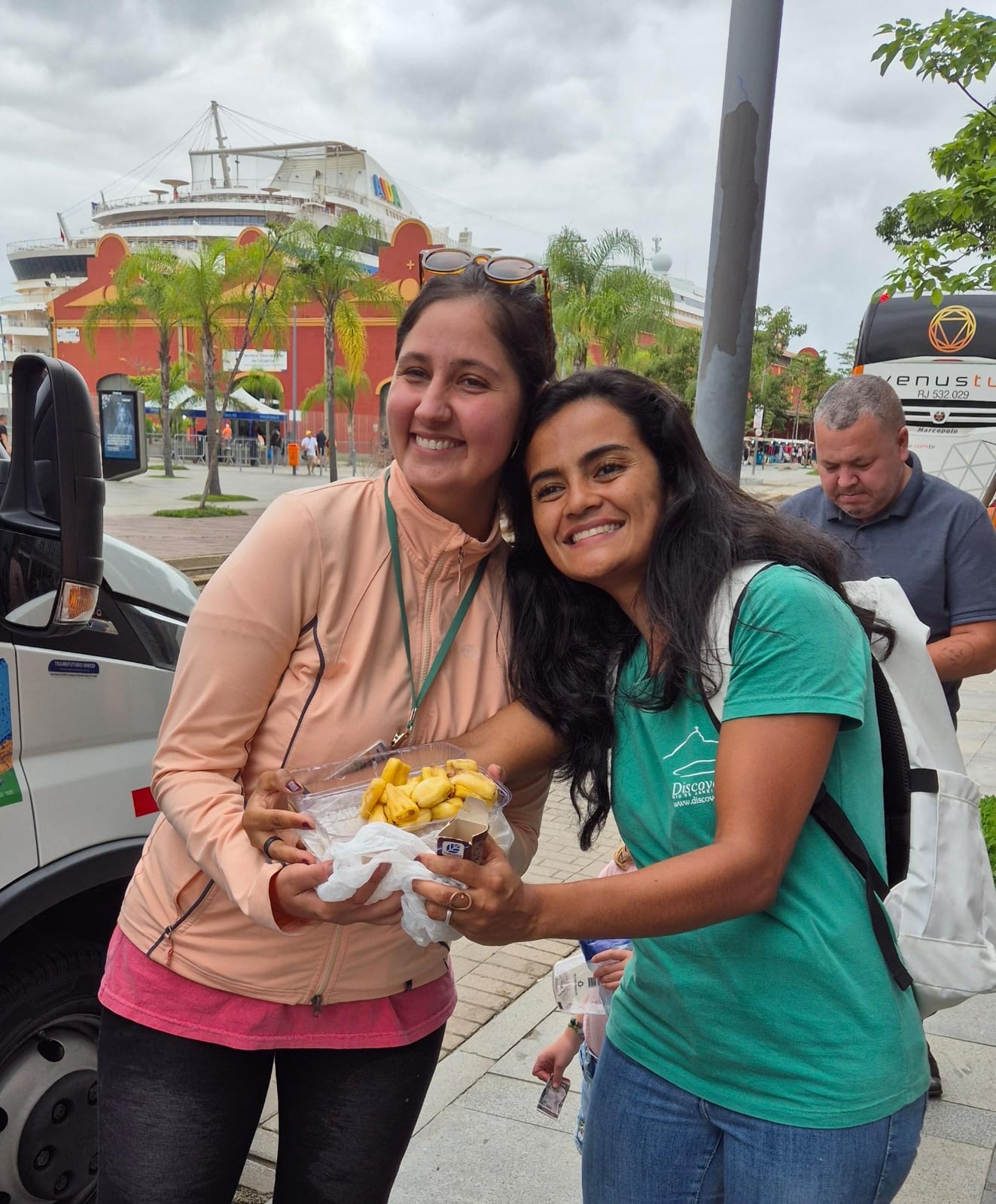 Wir treffen uns mit unserer Gruppe von gestern und unserer brasilianischen Reiseführerin Helena um 9:00 Uhr direkt vor dem Hafen. Sie wartet dort bereits gut gelaunt auf uns, und verkündet sofort die frohe Kunde: Heute soll es nicht regnen. Wir glauben mal dran, und hoffen drauf. Heute stehen drei wesentliche Ziele auf dem Programm, mit vielen kleinen Zwischenstationen. Wir wollen zur Cristo Statue, in den Regenwald mitten in der Stadt, und zum Maracana Stadion.