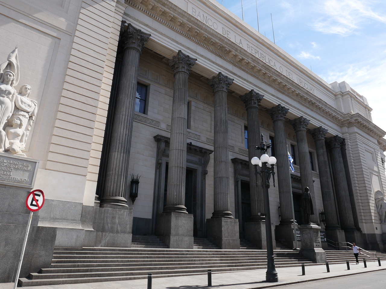 Wir schlängeln uns weiter durch die Altstadt, mal nach links und mal nach rechts. Bis wir vor einem prächtigen Gebäude stehen, welches mit diversen Säulen vor der Tür einen tollen Eindruck vermittelt. Die Schrift oben drüber verrät uns, dass es sich um die Nationalbank Uruguays handelt. Heute ist das Gebäude allerdings Zweckentfremdend als Museum. Später auf dem Schiff hören wir, dass es echt gut gestaltet sein soll, und man wohl sogar die alten Tresorräume besuchen kann. Jetzt ist es leider noch zu.