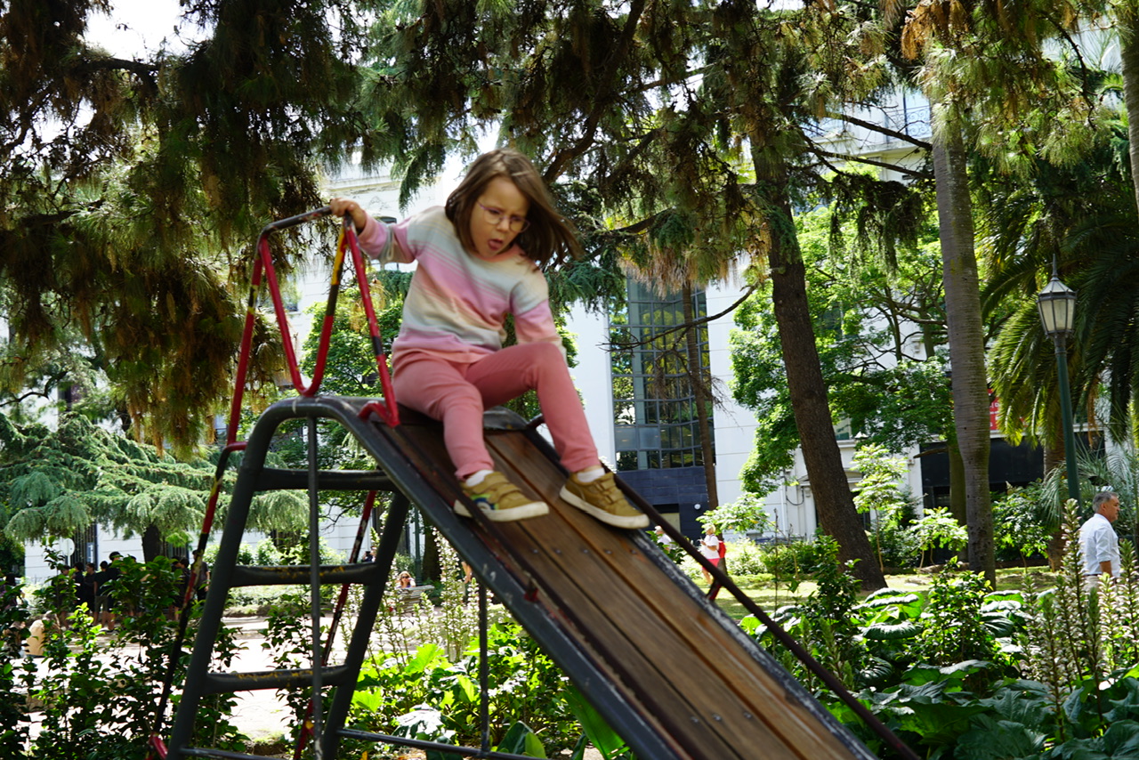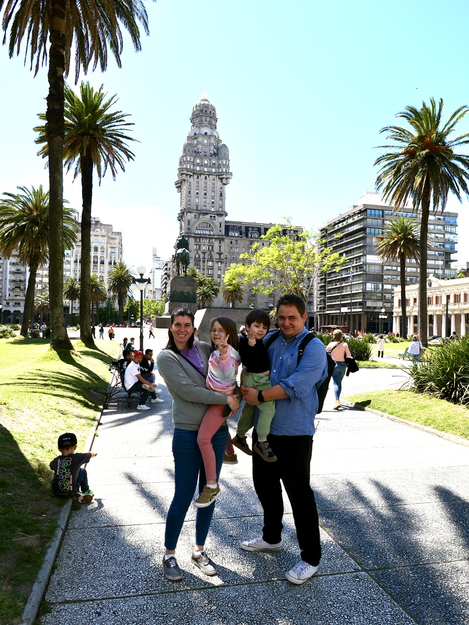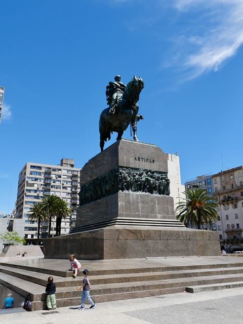 Der Plaza Zabala, benannt nach dem Stadtgründer Bruno Mauricio de Zabala, ist eine grüne, ruhige Oase in der Altstadt. Umgeben von historischen Gebäuden und eleganten Palmen, lädt der Platz mit seinem Denkmal und gepflegten Bänken zum Verweilen ein. Hier spürt man Montevideos kolonialen Charme hautnah. Für die Kinder war der Stop besonders relevant, da es hier einen kleinen Spielplatz gab. Dieser wurde ausgiebig bespielt. Wir beobachteten beim anschauckeln das Treiben auf dem Platz. Überall sitzen Leute mit ihren speziellen Matebecher und Thermoskannen und trinken. Schulklassen feiern im Park. Es ist generell eine tolle Stimmung.