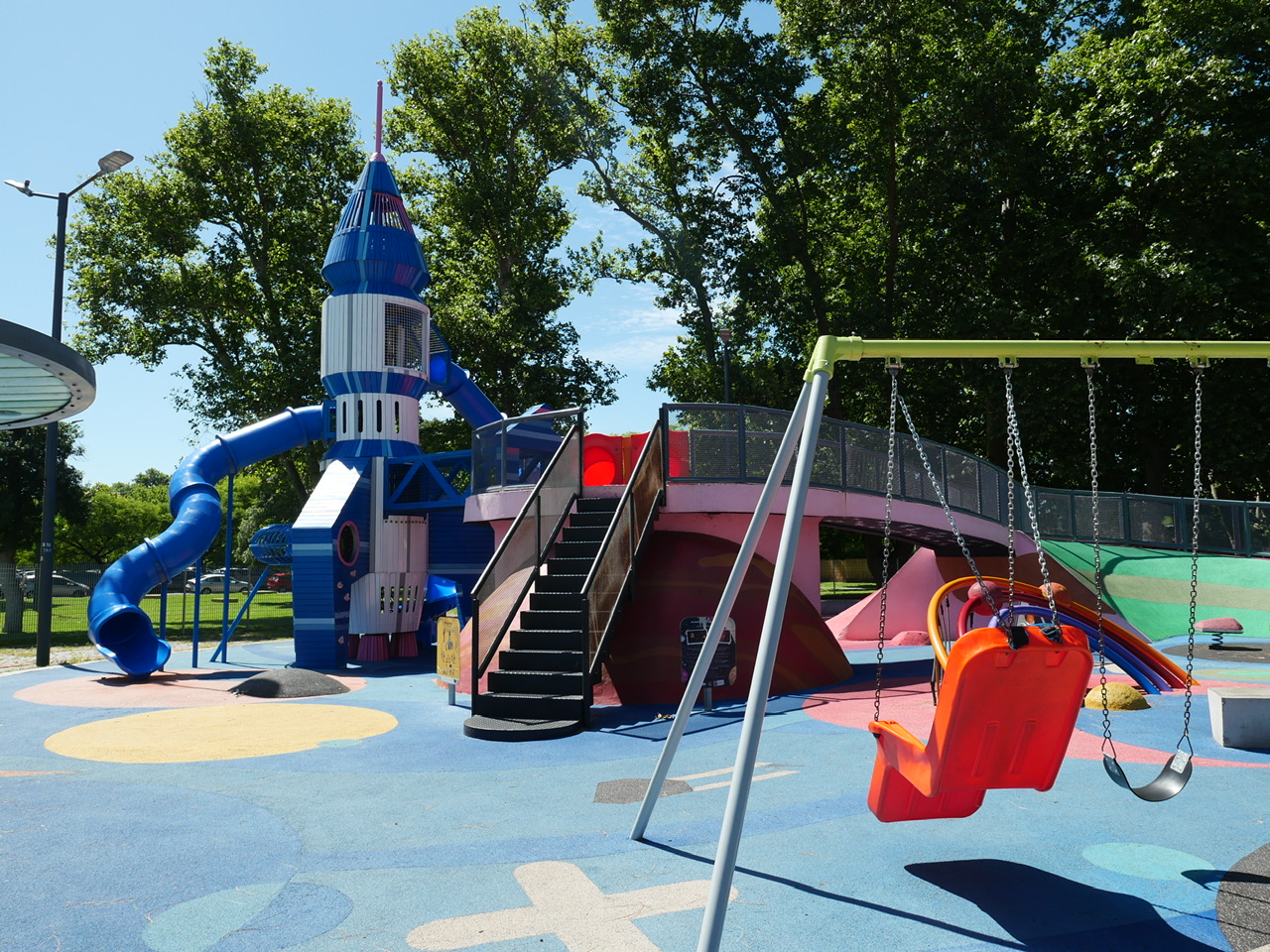 Am Planetarium ausgestiegen machen wir erst einmal halt auf einem Spielplatz. Hier können die Kinder die Planeten erklettern und wir uns einen Plan machen.