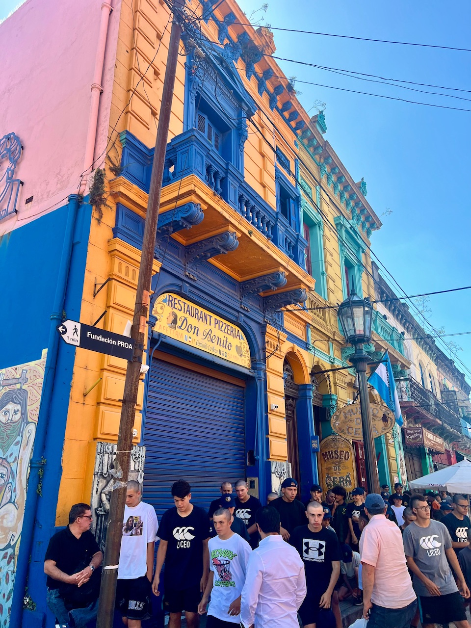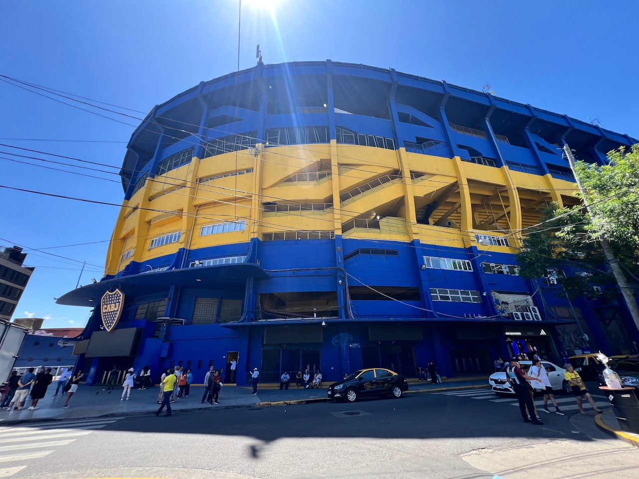 Unser Ziel war das bunte Viertel La Boca mit dem für seine bunten Häuser bekannten El Caminito. Ausstieg war hier in der gelb blauen Spielhölle, dem Verein La Bocca Junior in dem auch Diego Maradonna spielte.