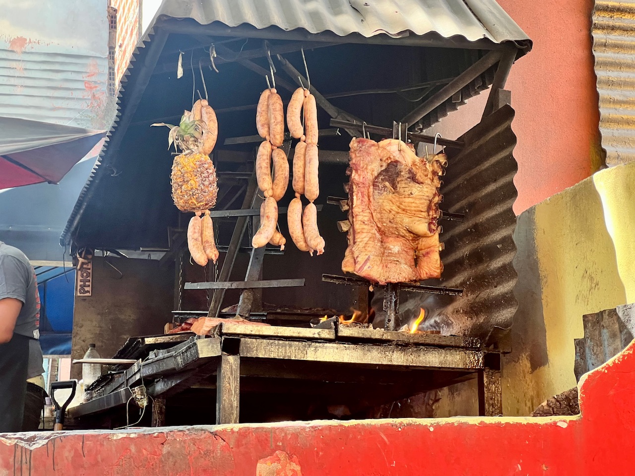 Gut gestärkt gingen wir dann weiter. Wir waren im touristischen Herzen der Stadt angekommen. So mussten wir die Aussicht auf die bunten Häuser mit vielen Leuten teilen, aber haben das Flair dennoch sehr genossen. Früher Floss hier durch die Straßen ein Fluss, dann verliefen hier Gleise und die Gegend verkam etwas. Ein Künstler entschied sich dann die Fassaden der Häuser bunt anzustreichen und heute ist es eine bunte und beliebte Touristenattraktion die auch als Museumsstraße gilt. Es gab hier auch wieder viele Restaurants die das Fleisch über offenem Feuer grillten. Vielleicht könnt ihr euch den Geruch der Gegend vorstellen.