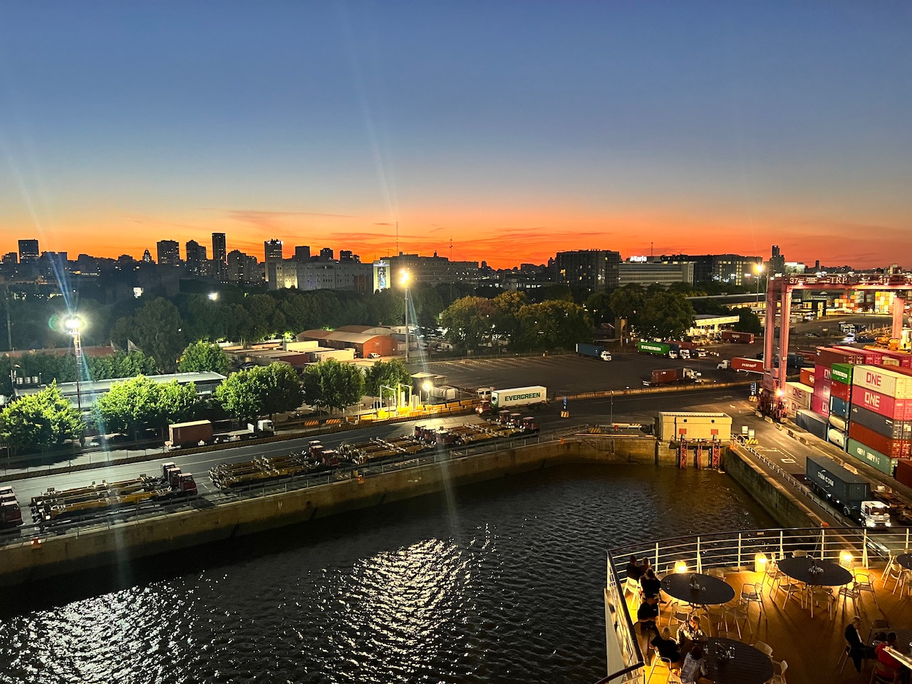 Am Hafen angekommen, standen wir mit einer Menge Mitreisender im Terminal zum Sicherheitscheck. Das hätte sicher eine halbe Stunde gedauert, wenn uns nicht eine sehr aufmerksame Mitarbeiterin an der ganzen Schlange vorbei direkt bei den Beamten abgegeben hätte. Mit den Hafenschuttle ging es dann zurück aufs Schiff. Um kurz nach 18 Uhr kamen wir glücklich und zufrieden auf unserer Kabine an.