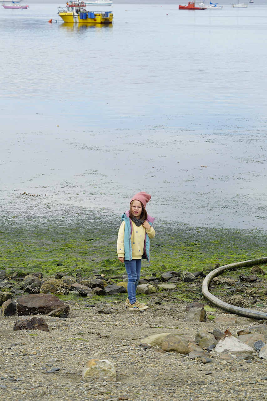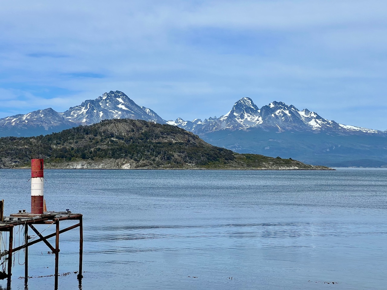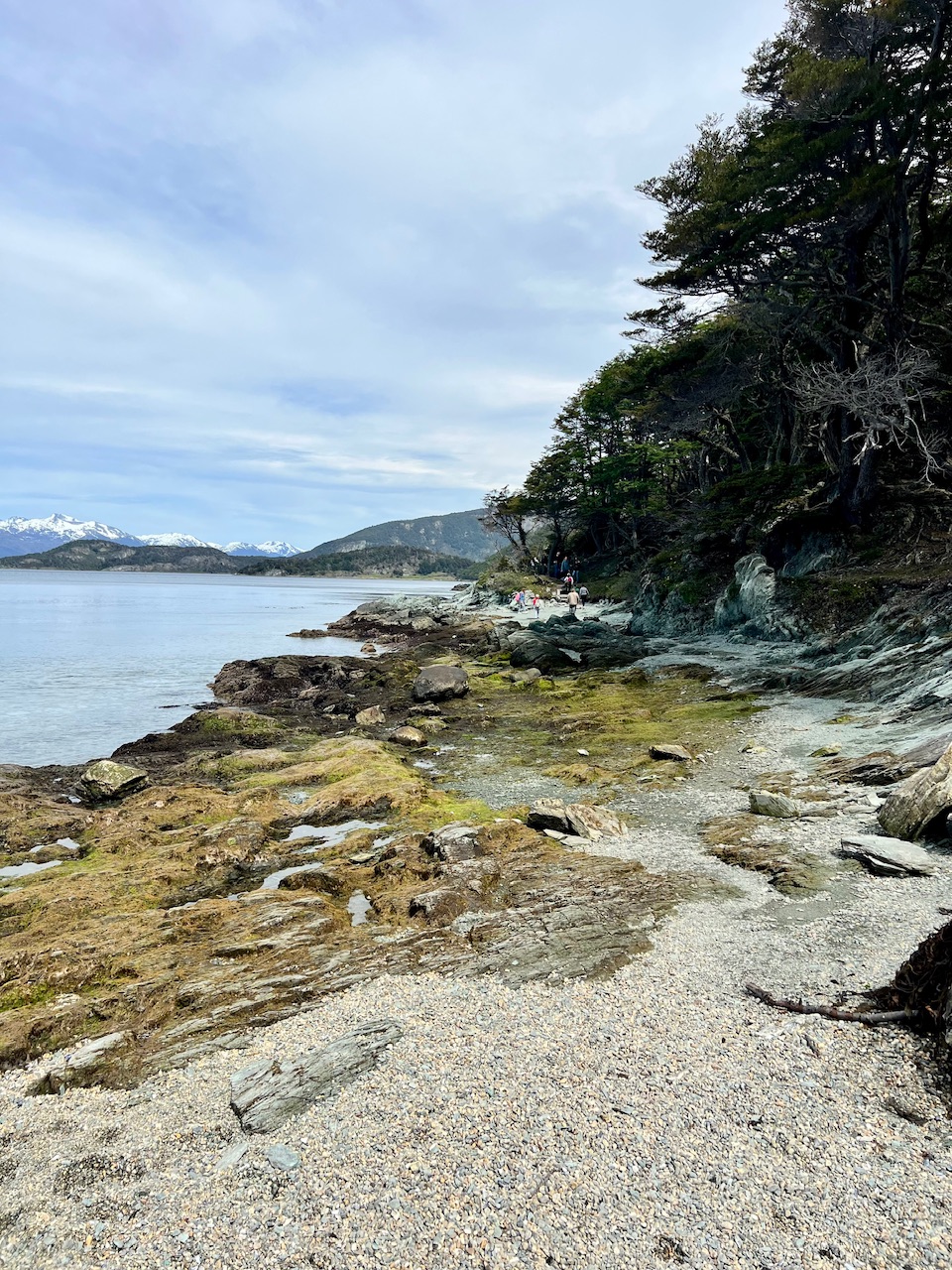 Wir erreichen kurze Zeit später auf jeden Fall unser Ziel, die Ushuaia Buchstaben mit Blick auf den Beagle-Kanal, den Hafen und die Berge. Vor uns kamen leider auch ein paar Aida Busse an, deswegen setzen wir uns eine kurze Runde ans Wasser und genießen die Aussicht während Lotti und Theo ihre Steinwurffähigkeiten verbessern.