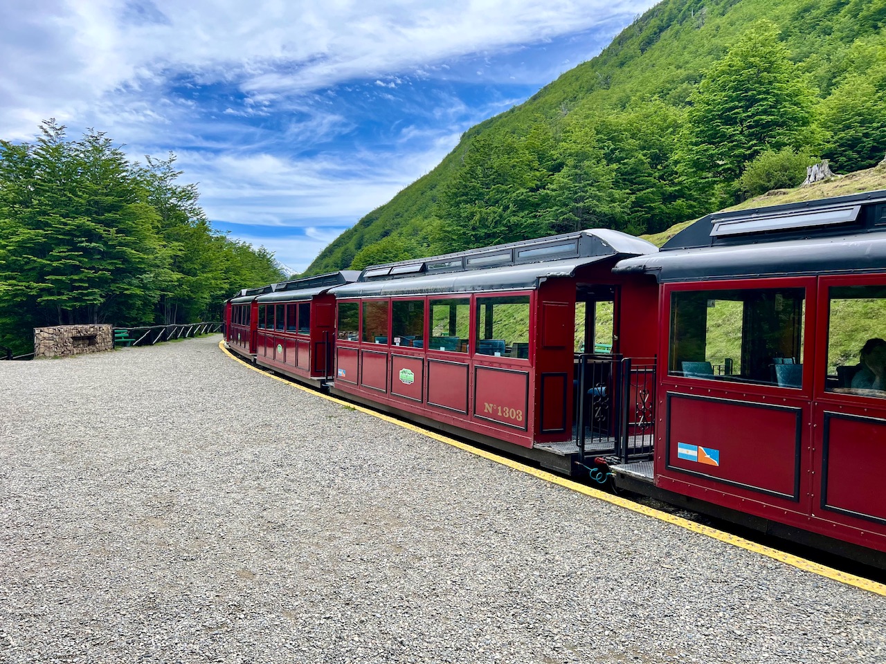 Heute steht eine Zugfahrt auf dem Plan. Und zwar mit dem Tren del Fin del Mundo („Zug am Ende der Welt“). Er hat seinen Ursprung im späten 19. Jahrhundert und diente zunächst als Gefängnisbahn in Ushuaia. Die Schmalspurbahn transportierte Häftlinge und Baumstämme aus den umliegenden Wäldern, um die wachsende Siedlung mit Brennholz und Baumaterial zu versorgen. Nach der Schließung des Gefängnisses in den 1940er Jahren verfiel die Bahn.