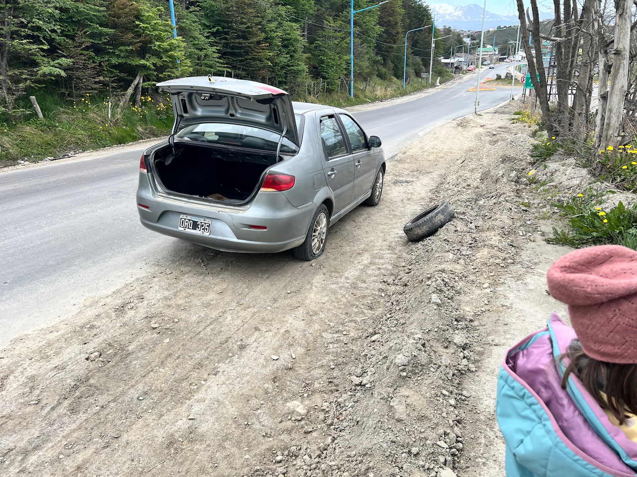 Zurück am Ausgangsbahnhof schauen wir uns noch kurz die Werkstatt der Züge an, bevor wir uns entscheiden müssen wo wir jetzt hin wollen. Wie entscheiden uns für die Innenstadt und rufen uns also wieder einen Uber, der auch schon nach 5 Minuten bei uns ist. Sein Auto ist in einem südamerikanischen Zustand. In seinem Tacho leuchten mindestens drei verschiedene Warnleuchten, und alles klappert. Und so kommt es dann wenig überraschend, dass wir auf einmal mitten in der Pampa anhalten müssen, weil das Auto hinten einen Platten hat. Ehrlicherweise ist uns der etwas platte Hinterreifen schon beim einsteigen aufgefallen, aber vielleicht muss das ja so?! Von wegen wenig Reifendruck bei holprigen Straßen oder so ähnlich. Naja, mit der Hilfe von Übersetzungsapps verständigen wir uns über das weitere Vorgehen. Er will versuchen seinen Reifen zu wechseln, und wir sollen uns einen neuen Fahrer bestellen. Das machen wir dann auch, und werden innerhalb von 5 Minuten abholt. Unser erster Fahrer tut uns trotzdem leid. Vor allem hat der Arme zwar einen Ersatzreifen dabei aber keinen Wagenheber.