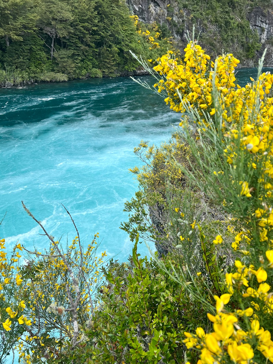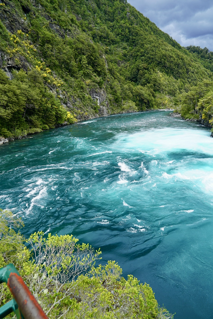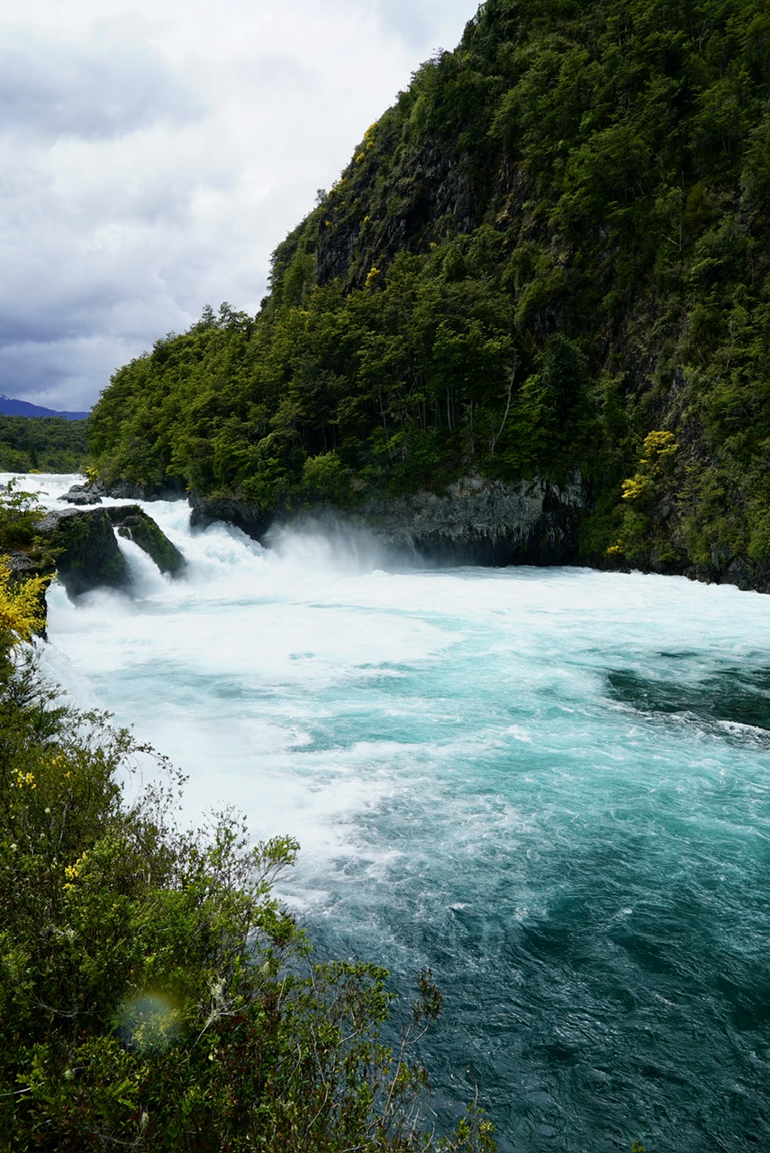 Irgendwann erreichen wir dann aber die Zufahrt zum Nationalpark, und kurz darauf auch das dazugehörige Besucherzentrum, von dem aus die Wanderungen durch das Gebiet starten. Auch Chile hat bereits erkannt, dass man super Eintrittsgelder nehmen kann, um die Leute natürliche Highlights besuchen zu lassen. Für uns ist es dann eine relativ kurze Wanderung über eine Brücke und ein Stück Wald. Schon am Anfang des Pfades kann man das gewaltige Rauschen der Wassermassen hören. Und wir werden absolut nicht enttäuscht. Wasserfälle sind ja immer so eine Sache, mal sind sie ganz klein weil es lange nicht geregnet hat, sie sind extrem weit entfernt, sodass man kaum was erkennt oder das Wasser ist extrem verdreckt, und der Anblick macht deshalb keinen Spaß.