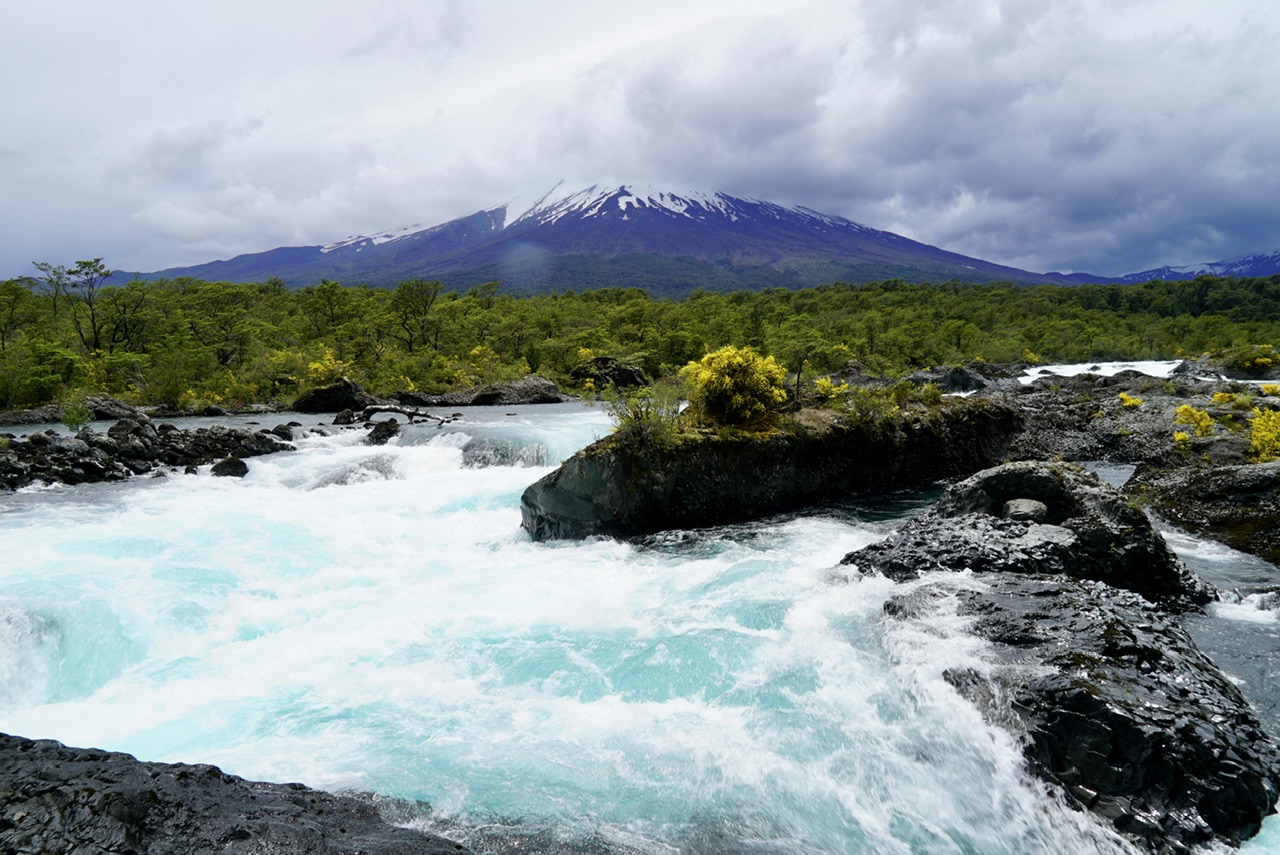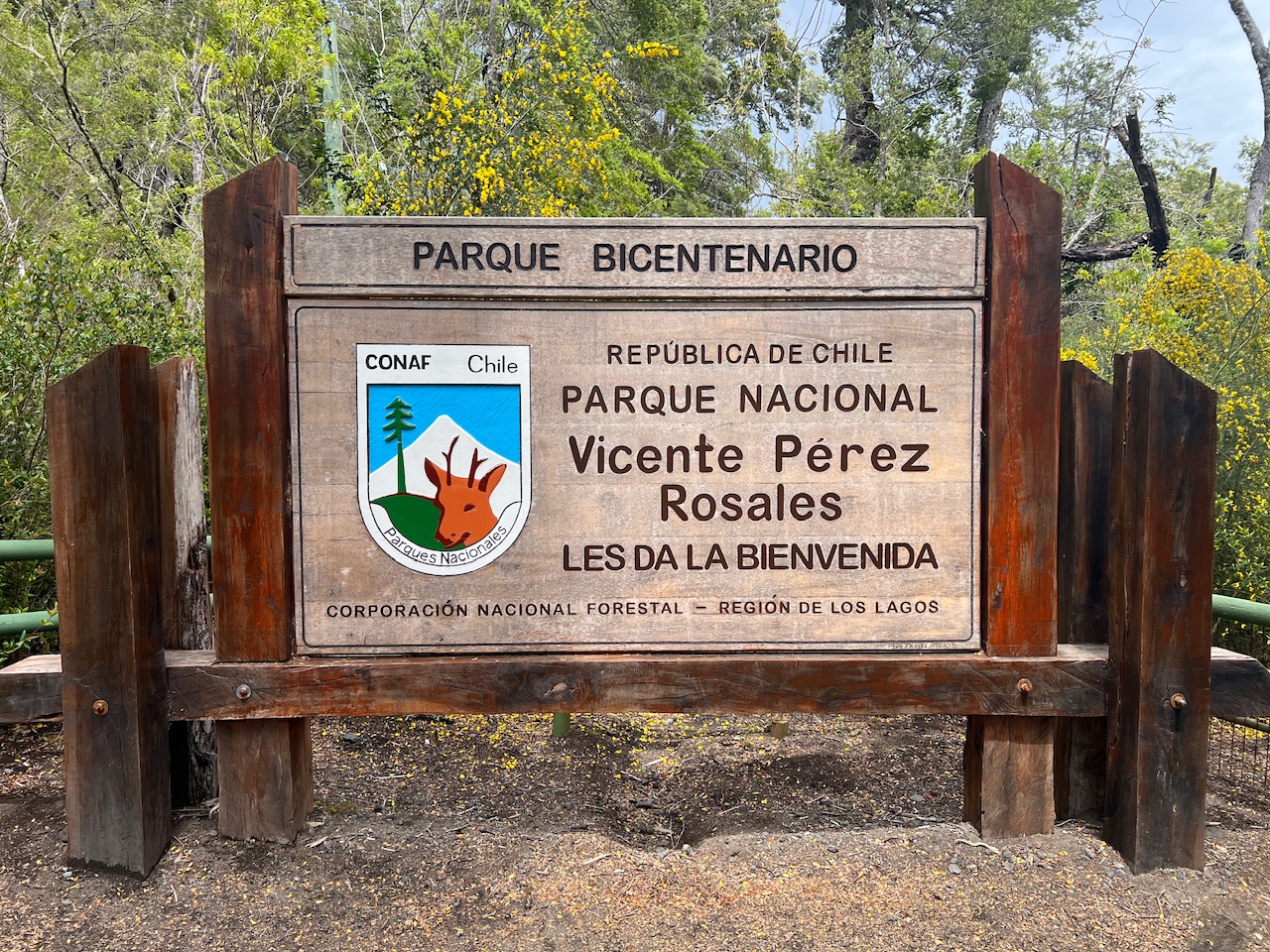 Nach einer Weile im Auto können wir zum ersten Mal das Highlight des Nationalparks erblicken. Wir schauen zum ersten Mal auf den Vulkan Calbuco. Mit über 2000 Metern Höhe, erhebt er sich deutlich über die restliche Landschaft und erstreckt sich heute sogar bis in die Wolken. Man kann die Form des Vulkans deutlich erkennen, auch wenn uns der Blick auf die Spitze heute verborgen bleibt. Entlang der Straßen gibt es immer wieder Wegweiser zur nächsten Evakuierungszone. Nötig ist das, weil der Vulkan für seine explosionsartige Aktivität bekannt ist. Zuletzt ist er vor 10 Jahren ausgebrochen, wo er eine riesige Aschewolke kilometerweit in die Luft schoss, und die ganze Gegend vollständig evakuiert werden musste. Heute deutet sich keine Aktivität an, der Anblick ist jedoch trotzdem majestätisch und macht einem die Machtverhältnisse auf diesem Planeten noch mal klar.