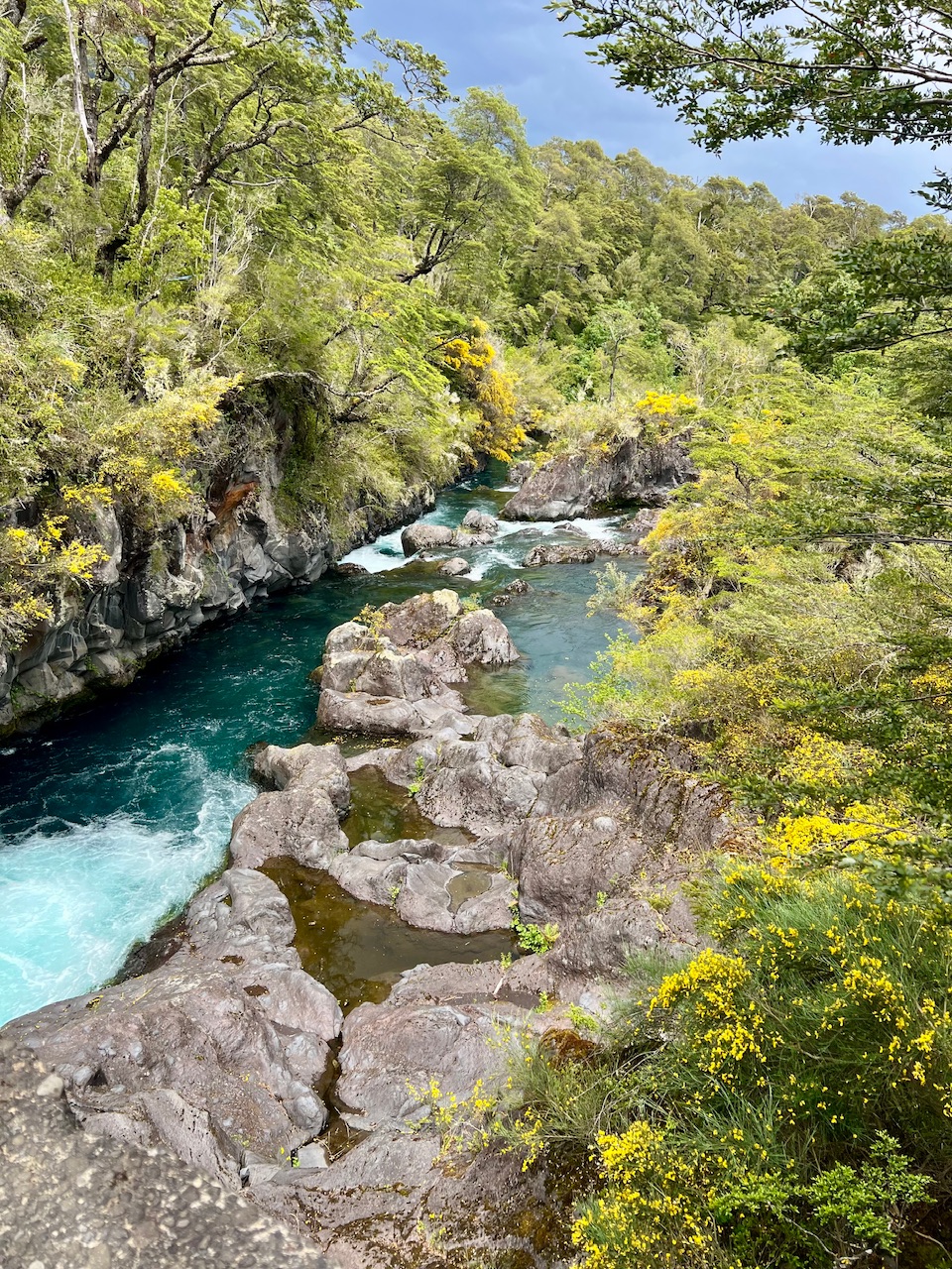 Hier ist nichts der Fall. Die Platformen zum Schauen sind nur wenige Zentimeter über den Felsspalten durch die das Wasser rauscht. Die Fälle sind außerdem bis oben hin voll mit türkisblauem Wasser, welches sich den Weg durch die engen Felsformen sucht.